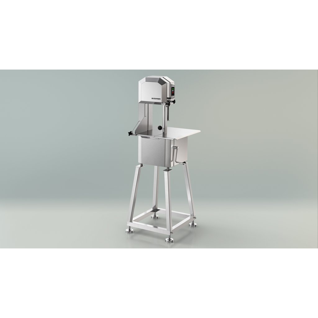 Výkonný stroj na rozbúranie a porciovanie čerstvého mäsa s kosťou aj bez kosti, rezanie dutých kostí, hydiny a mrazených rýb. Hladké telo z jedného odliatku bez nitov.‑ Rýchlosť pílového pásu: cca 17 m/s‑ Dĺžka pílového pásu: 1760 mm‑ Výška rezu: 250 mm‑ Hrúbka rezu: 10–190 mm‑ Systém napínania a uvoľnenia pílového pásu, nádoba na odpad, pracovný stôl so stupnicou, hnacie kotúče pílového pásu z nehrdzavejúcej ocele‑ 2 pílové pásy v rozsahu dodávky‑ Voliteľne: zväčšený pracovný stôl‑ Krytie: IP 55‑ Napätie: 230 V / 50 HzDodatočné parametre