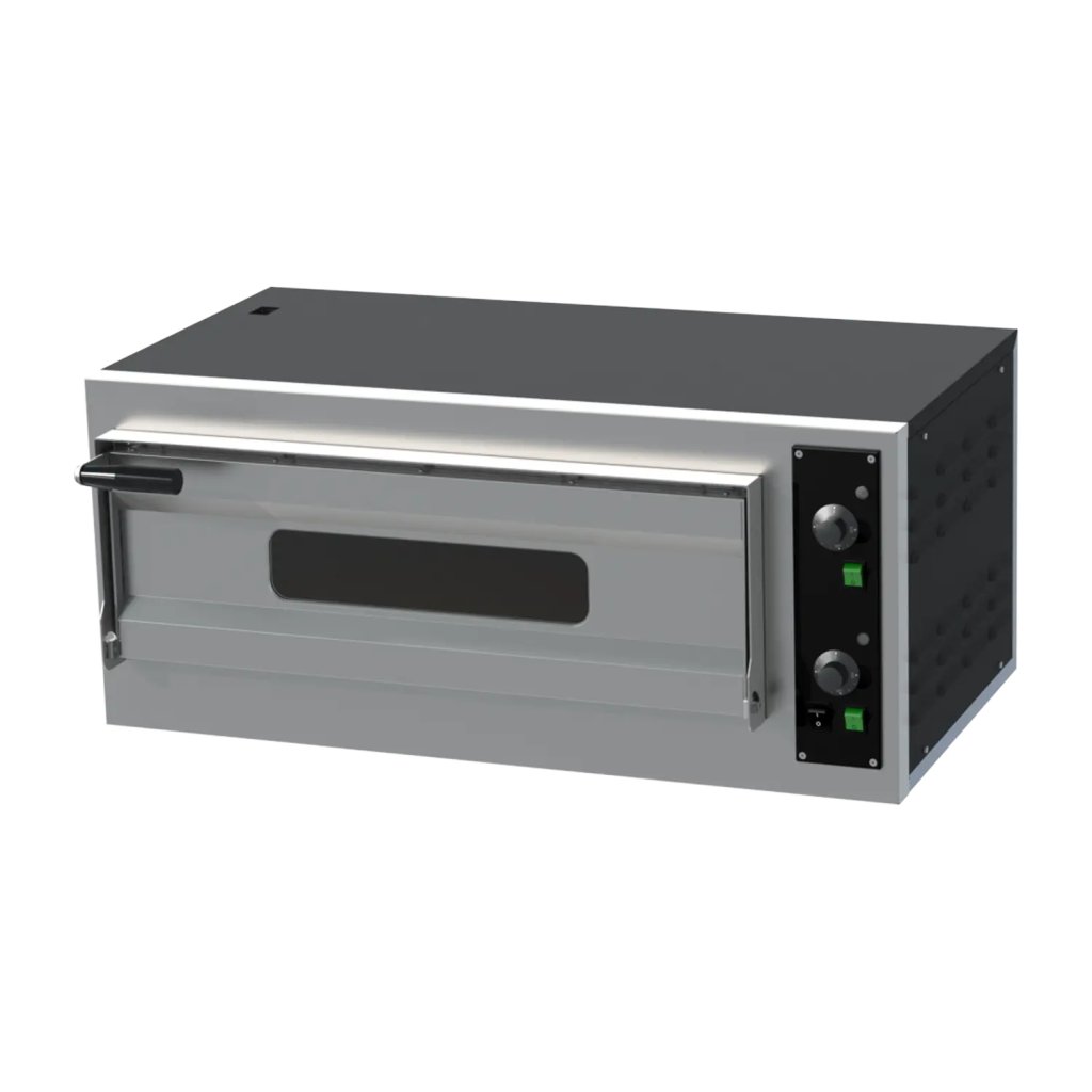 Sap kód: 00013930; Šírka netto [mm]: 950; Hĺbka netto [mm]: 600; Výška netto [mm]: 412; Hmotnosť netto [kg]: 45.00; Šírka brutto [mm]: 1040; Hĺbka brutto [mm]: 675; Výška brutto [mm]: 575; Hmotnosť brutto [kg]: 53.00; Typ spotrebiča: Elektrické zariadenie; Príkon elektrický [kW]: 4.400; Napájanie: 400 V / 3N - 50 Hz; Typ ovládania: Mechanické; Šírka vnútornej časti zariadenia [mm]: 700; Hĺbka vnútornej časti zariadenia [mm]: 420; Výška vnútornej časti zariadenia [mm]: 150; Minimálna teplota zariadenia [°C]: 50; Maximálna teplota zariadenia [°C]: 450; Kapacita pízz [cm]: 2x 33; Kontrolky: chodu a nahriatia; Tlačidlo on/off: Áno; Typ madla: krátke, plastové; Šamotové dosky: Spodné; Hrúbka šamotových dosiek [mm]: 14; Nezávislé vykurovacie zóny: Samostatné ovládanie pre horné a spodné vykurovacie telesá; Vnútorné osvetlenie: Áno; Počet komôr: 1; Komínik pre odťah vlhkosti: Áno; Prierez vodičov CU [mm²]: 1;Dodatočné parametre