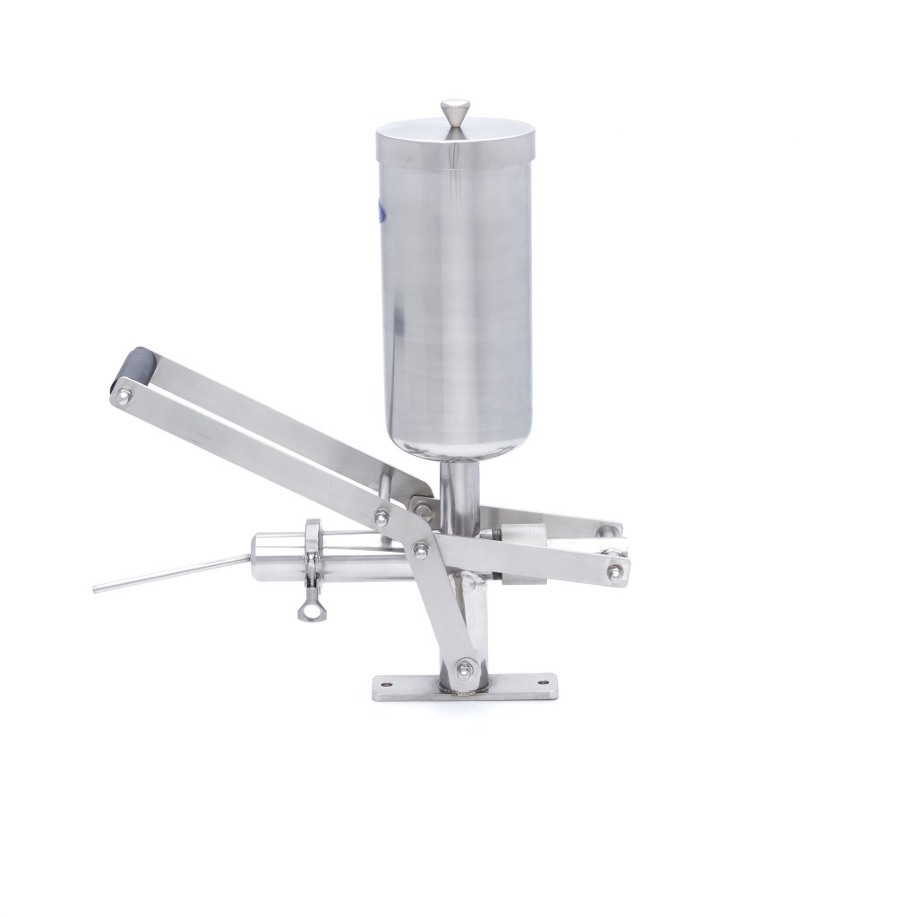 Tento plnič churros je ručne ovládaný prístroj na plnenie churros a pri jeho výrobe sa myslelo na to, aby sa ľahko a pohodlne používal. Toto plniace zariadenie má napríklad veľký zásobník, do ktorého môžete vložiť päť litrov požadovanej náplne. Stlačením rukoväte vpredu dole sa náplň vytlačí tryskou, takže môžete churros naplniť lahodnými omáčkami. Stojí tiež na robustnej základovej doske s výrezmi, ktoré umožňujú priskrutkovanie k pracovnej doske, aby prístroj nemohol počas používania skĺznuť.