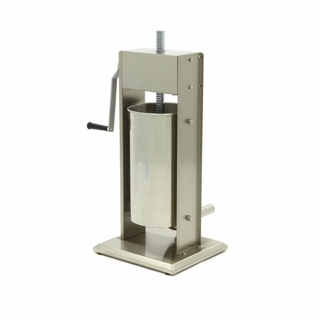 Na výrobu veľkého množstva klobás potrebujete v kuchyni alebo mäsiarstve profesionálnu plničku klobás. Táto plnička klobás má plniacu kapacitu 15 litrov, čo vám umožní ľahko a rýchlo vyrobiť veľké množstvo klobás každý deň. Tento robustný plnič klobás je štandardne dodávaný so štyrmi plniacimi trubkami s priemerom 16, 22, 32 a 38 mm. Plniace trubky sú vyrobené tak, aby ste na ne mohli ľahko nasunúť črievko alebo umelé črievko. Okrem toho je prítlačná doska vybavená otvorom na odvzdušnenie. Týmto spôsobom sa do údenín počas procesu dostáva čo najmenej vzduchu. Prítlačná doska je tiež pekne uzavretá tesnením. Plnička klobás môže otáčať klobásy dvoma rýchlosťami, čo vám dáva dostatočnú kontrolu nad procesom plnenia.