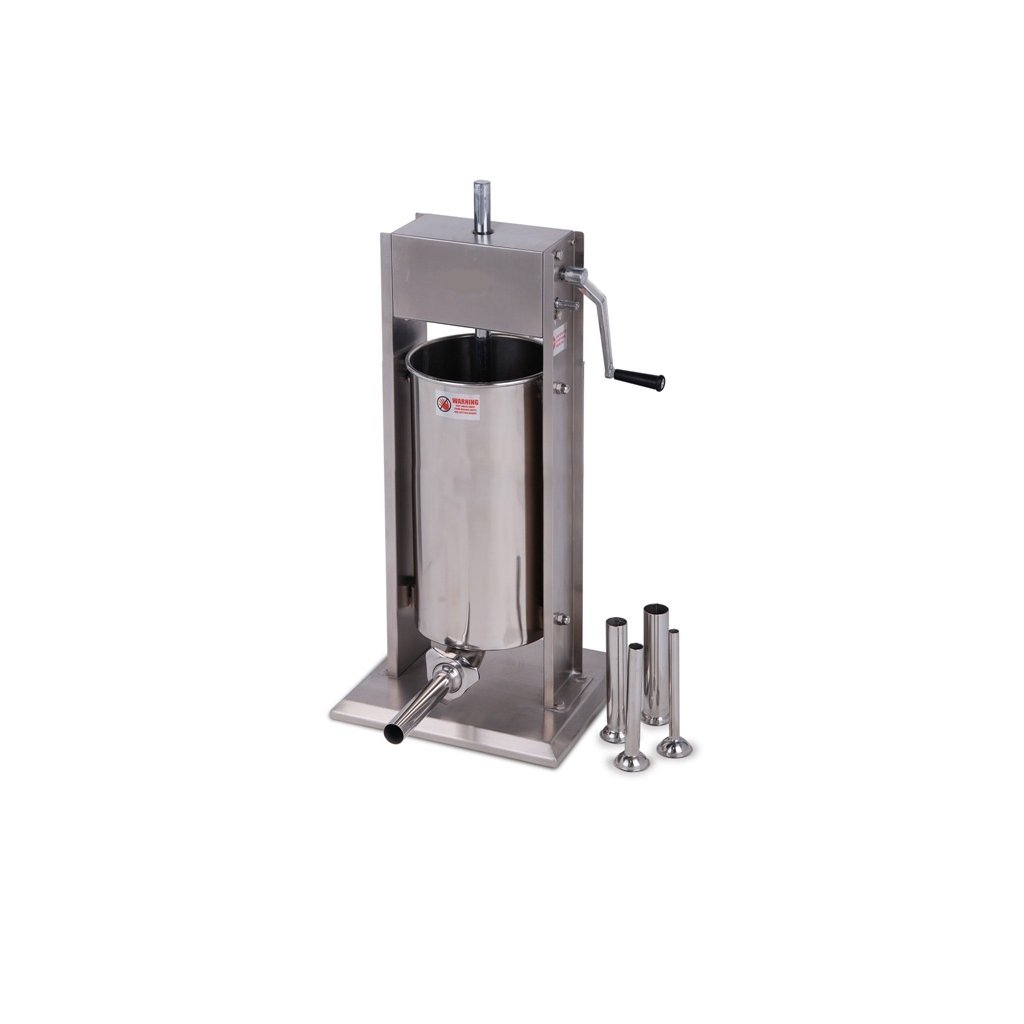 Plnička na klobásy z nehrdzavejúcej ocele. Jednoduchá na obsluhu, 2 rýchlosti, ktoré je možné regulovať pomocou rukoväte. Súčasťou sú 4 nehrdzavejúce lieviky s priemerom: 16, 22, 32, 38 mm. Možnosť dokúpenia lievika s priemerom 10 mm, ktorý je určený na tenké klobásy.Dodatočné parametre