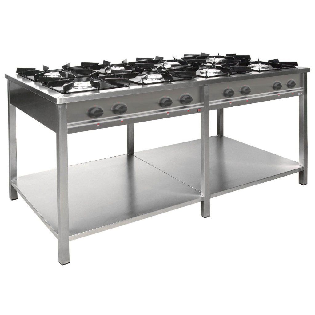 Vlastnosti zariadenia: horáky majú dva prstence (dvojkorunkové horáky), ktoré rovnomerne ohrievajú dno nádoby, navýšením efektivity využitia plynu, v závislosti od potrieb, môžete použiť horáky s výkonom 3,5; 5,0; 7,0 alebo 9,0 kW, ventily s ochranou proti odtoku prerušia prívod plynu v prípade zhasnutia plameňa, možnosť nastavenia tzv. „úsporného plameňa“, v modeloch 1-, 2-, 3- horákových sú piezoelektrické zapaľovače, v iných variantoch sú elektrické, vyberateľné dosky pod horákmi uľahčujú čistenie, smaltované rošty, prípojka plynového potrubia 1/2 ", sú použité nožičky s nastaviteľnou výškou, môžu byť použitý zemný plyn G 20 (predtým GZ-50) a plyn G 30 (propán alebo propán-bután PB), stoličky sú vyrobené z kyselinovzdornej nehrdzavejúcej ocele triedy AISI 304.Buďte prvý, kto napíše príspevok k tejto položke.
