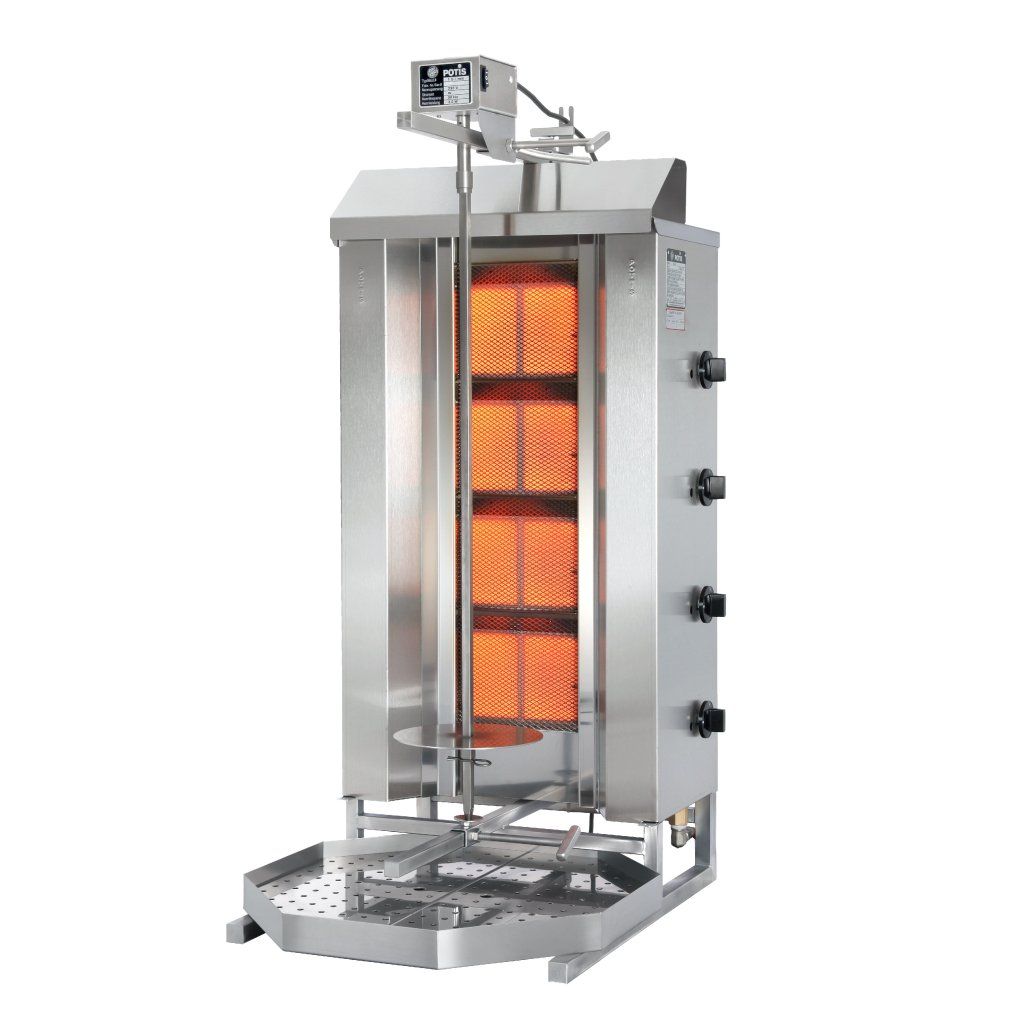 Plynový gril na kebab/gyros - Jednotka z nehrdzavejúcej ocele - 4-ohrevné polia - Maximálna hmotnosť mäsa: 70 kg - Maximálna výška mäsa: 630 mm - Spotrebič vybavený zásobníkom na tuk: 550 x 550 mm - Plocha horáka: 645 x 185 mm - Spotrebič spĺňa všetky bezpečnostné predpisyDodatočné parametre