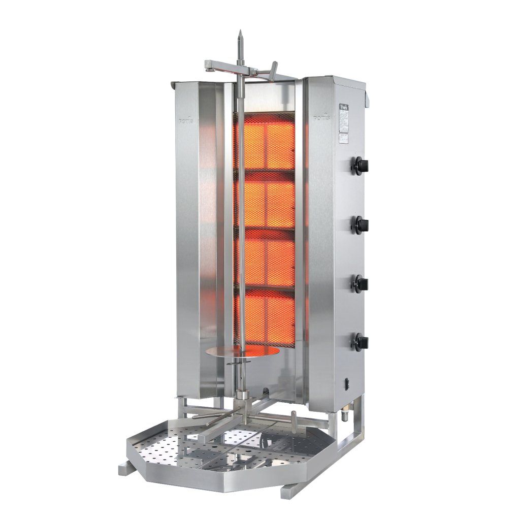 Plynový gril na kebab/gyros, 4 vykurovacie polia, záťaž 70 kg, 14 kW, dolný pohon, 550x510x1030 mm, nádoba na tuk 550x550 mm | POTIS, MU GD4/zemný plyn