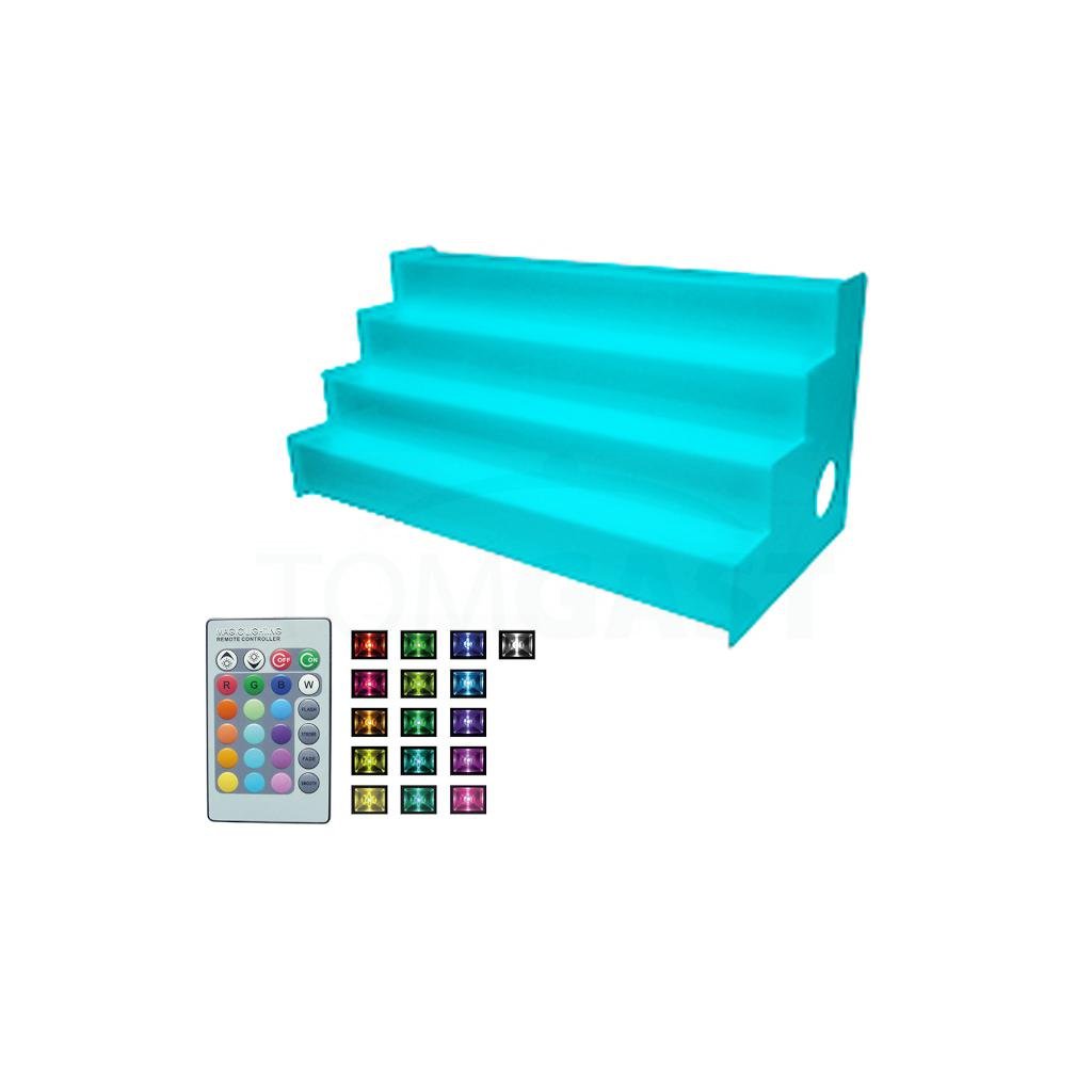 Skvelý a štýlový doplnok do každého baru či bufetu. Schody podsvietené pomocou LED svetla dodávajú tú pravú atmosféru a fľaše či jedlo na nich vyzerá parádne. Majú 4 stupne a 16 farieb na výber. Navyše sa ľahko čistia a dajú ovládať pomocou diaľkového ovládača, čo uľahčuje prácu.Podsvietené LED schody
