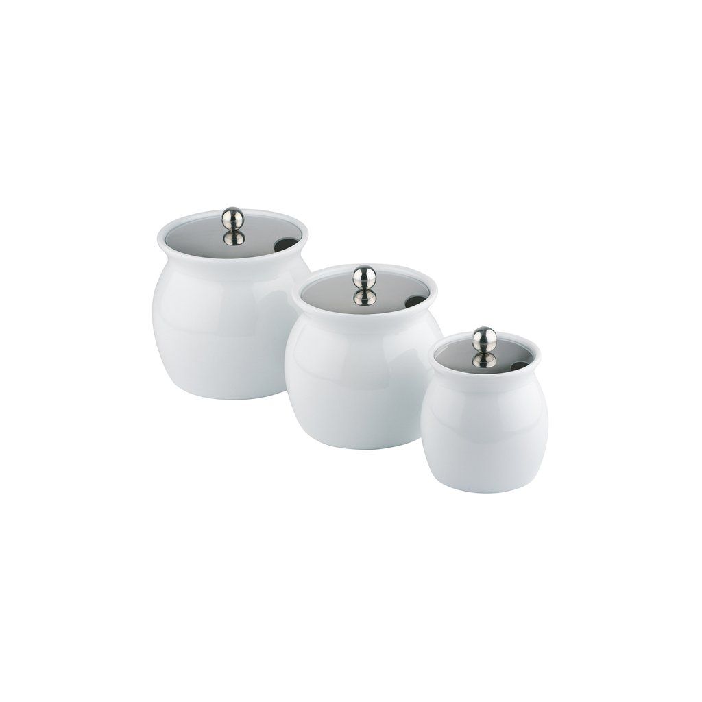 Nádoba vyrobená z bieleho porcelánu. Glóš s výrezom na lyžicu, vyrobený z nehrdzavejúcej ocele. Vhodná do umývačky riadu.Dodatočné parametre