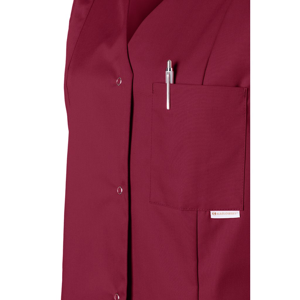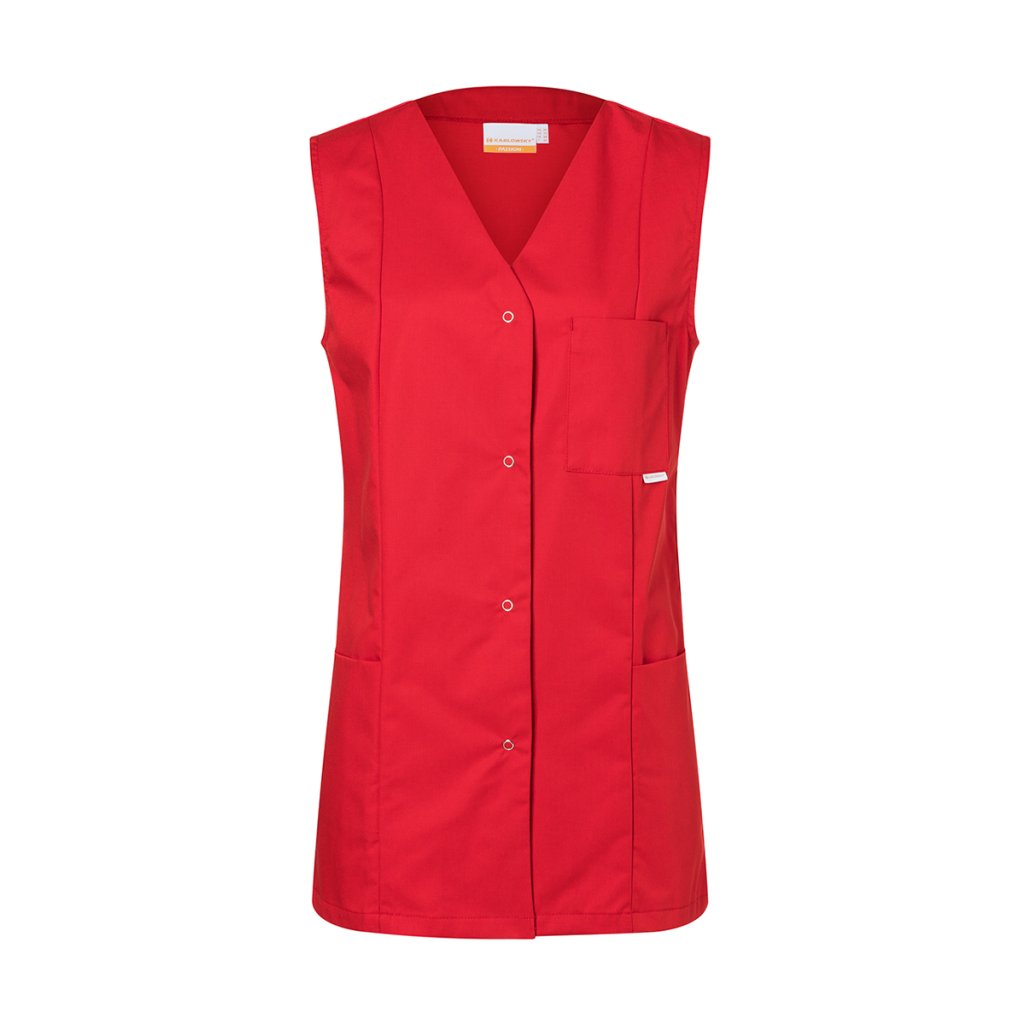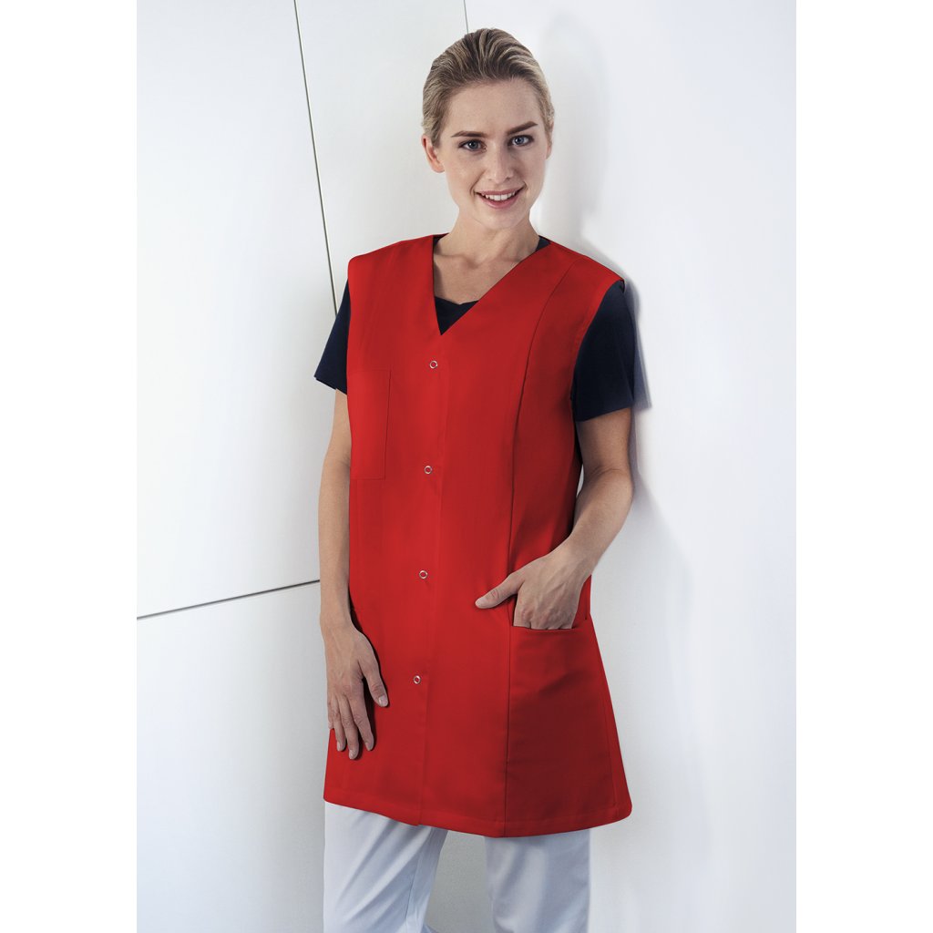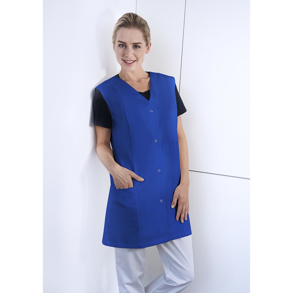 | keprová väzba, 65 % polyester / 35 % bavlna, 215 g/m² | vysoko rafinovaná, vyzrážaná, stálofarebná, ľahko sa udržuje | | dámska tunika bez rukávov voľného strihu | všestranné použitie v oblastiach: zdravotníctvo, starostlivosť, wellness, kozmetika, upratovanie a mnoho ďalších | veľmi vysoká prateľnosť pri 95 °C zaisťuje klinickú čistotu | pohodlný strih s anglickými švami | výstrih do V | 2 skryté bočné vrecká a 1 našité náprsné vrecko na ľavej strane (11 x 13 cm) | otvorená gombíková léga so 4 patentnými gombíkmi | dĺžka zadného dielu cca 79 cm pri veľkosti 38 | vhodné pre priemyselné pranieDodatočné parametre