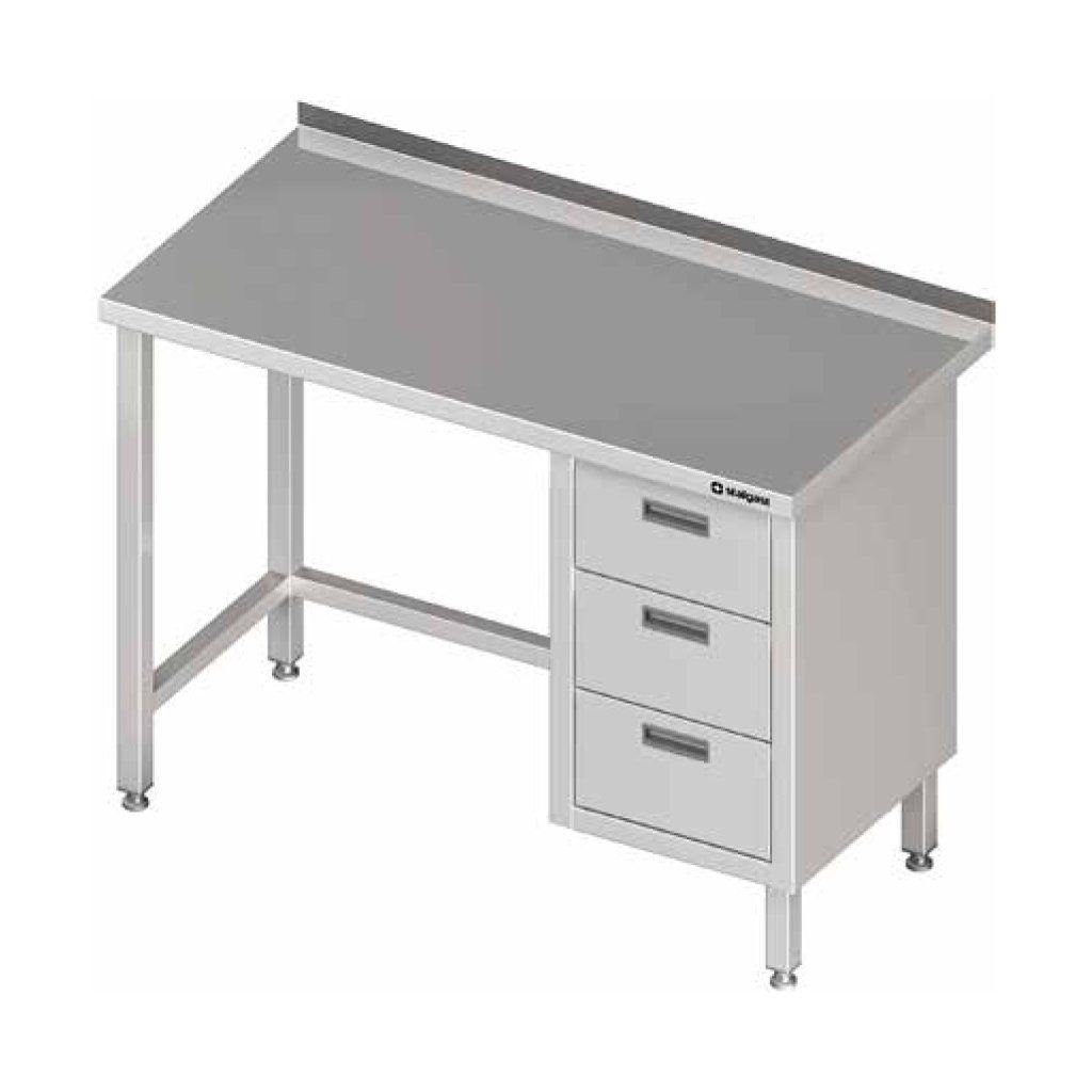 Prístenný stôl s blokom troch zásuviek 1700x600x850 mm vyrobený z kvalitnej nehrdzavejúcej ocele. Hĺbka zásuviek 150 mm. Blok zásuviek z pravej strany. Možnosť montáže zámku za poplatokDodatočné parametre