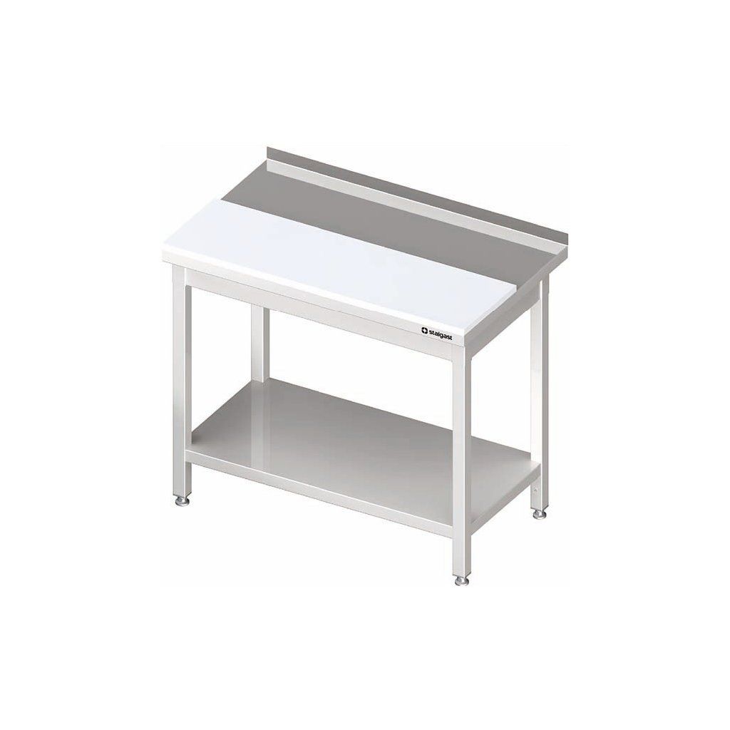 Prístenný stôl s polyetylénovou doskou a policou 1200x600x850 mm vyrobený z kvalitnej nehrdzavejúcej ocele. Zasielaný vo zvárané forme. Doska zapustená v pracovnej ploche. Hĺbka dosky 300 mm. Voliteľne závesná zásuvka k samostatnej montážiDodatočné parametre