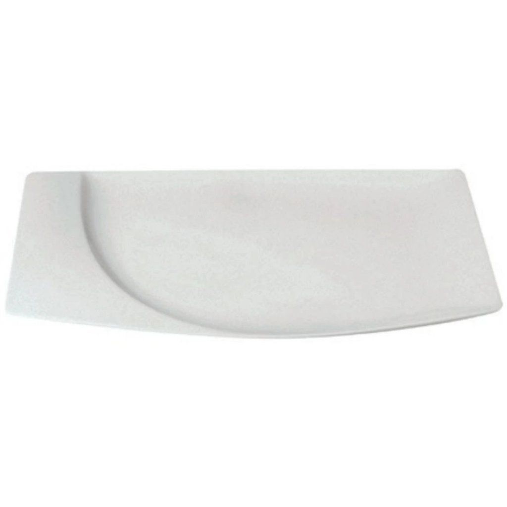 Plytký tanier z porcelánu v bielom prevedení bez dekoru v obdĺžnikovom prevedení. Krivky kolekcie Mazza pôsobia moderným šarmom, ktorý dovoľuje popustiť uzdu fantázii a zaujme vašich hostí na prvý pohľad. Na bielej farbe parádne vyniknú rôzne druhy pokrmov. Taniere má širší okraj, ktorý môžete ozdobiť pomocou glazúry napr. vašim logom.Tanier plytký obdĺžnikový 26 × 17 cm