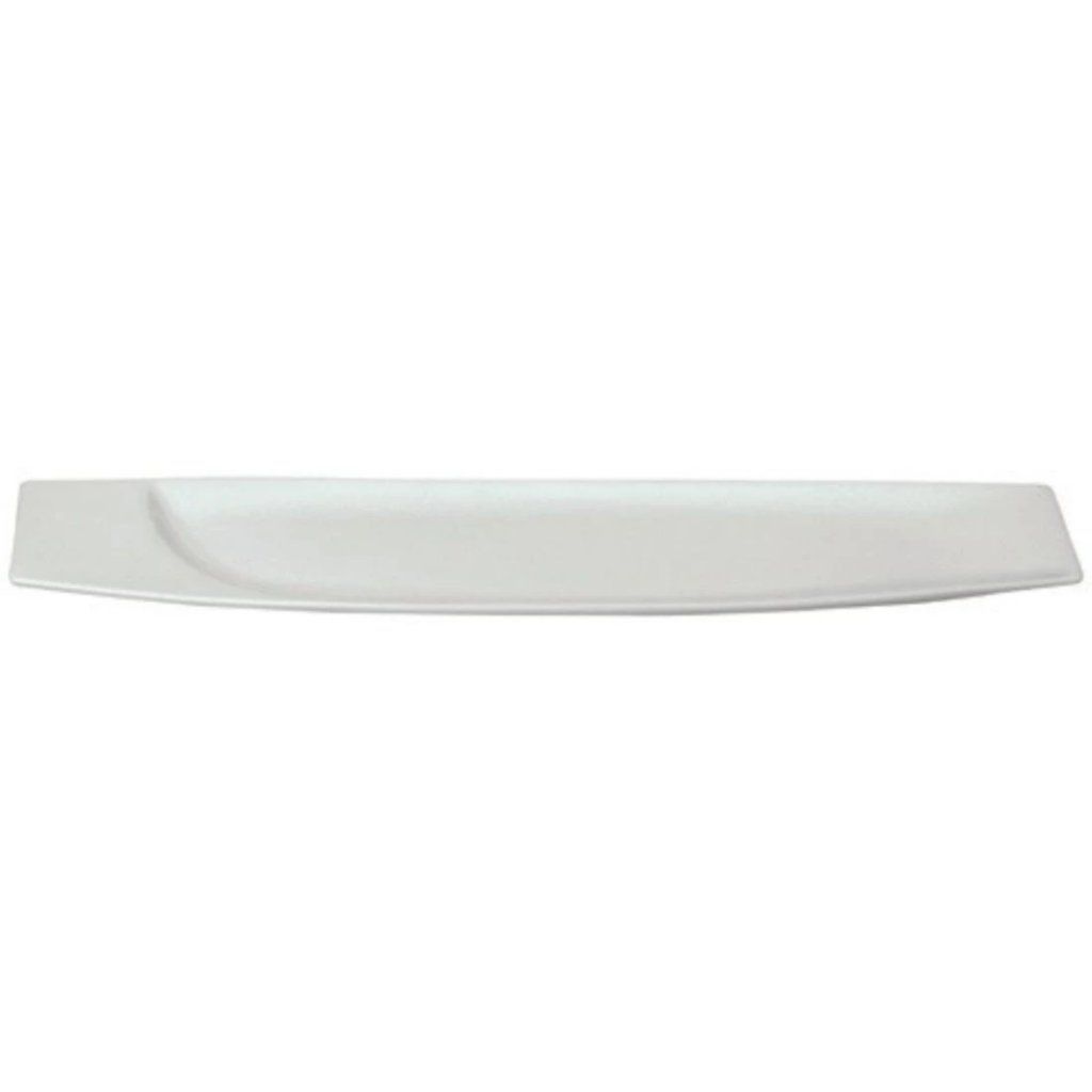 Plytký tanier z porcelánu v bielom prevedení bez dekoru v úzkom prevedení. Krivky kolekcie Mazza pôsobia moderným šarmom, ktorý dovoľuje popustiť uzdu fantázii a zaujme vašich hostí na prvý pohľad. Na bielej farbe parádne vyniknú rôzne druhy pokrmov. Tanier má širší okraj, ktorý môžete ozdobiť pomocou glazúry napr. vašim logom. Tento tanier je vhodný na podávanie bagiet a iných podlhovastých pokrmov.Tanier plytký úzky 20 × 7,5 cm