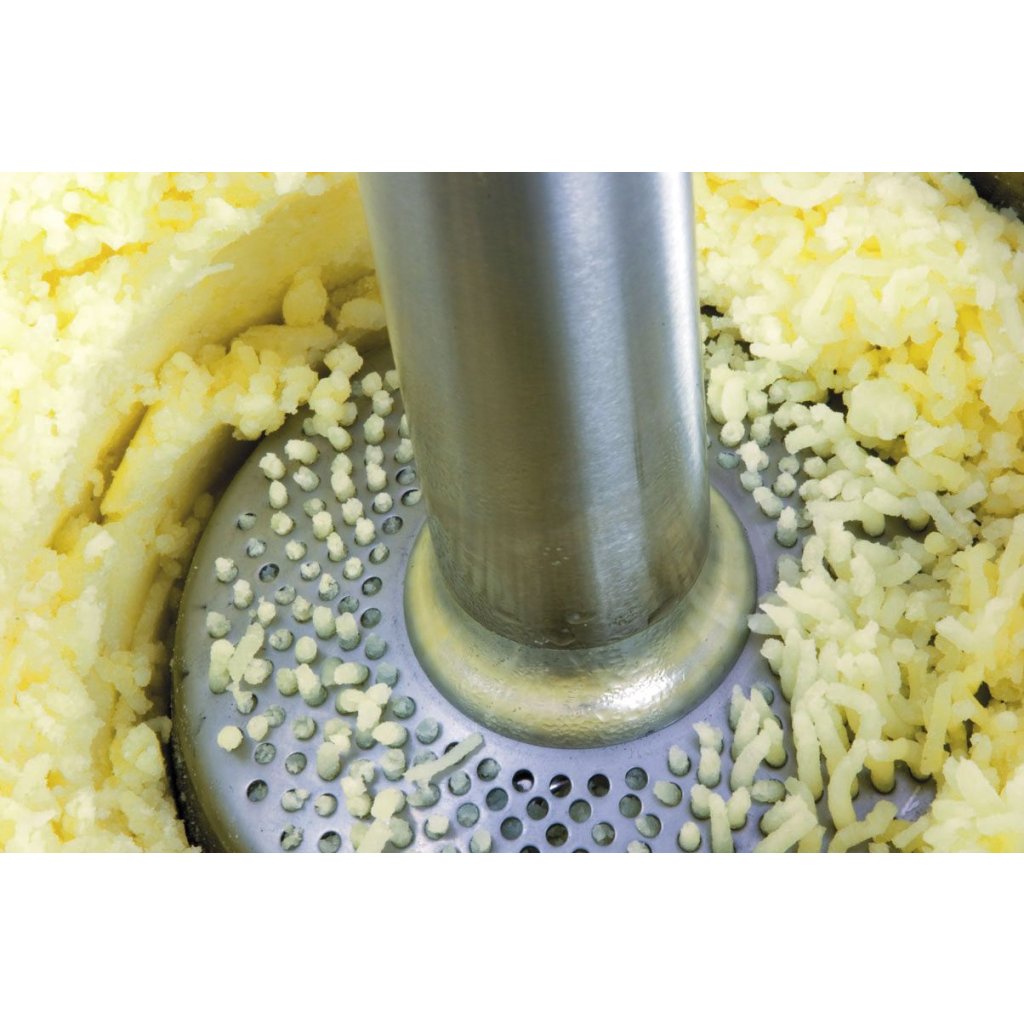 Neodnímateľný pučiaci nástroj a perforovaná mriežka a nôž z nehrdzavejúcej ocele zaisťujú odolnosť stroja a jednoduchú údržbu. Všetky súčasti je možné ľahko rozobrať a umyť pod tečúcou vodou.