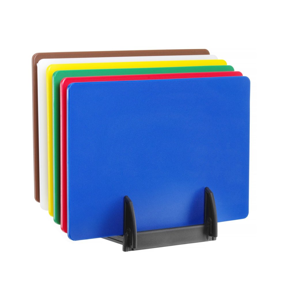 Sada 6 krájacích dosiek HACCP so stojanom, HENDI, 6 ks, 450x300mm