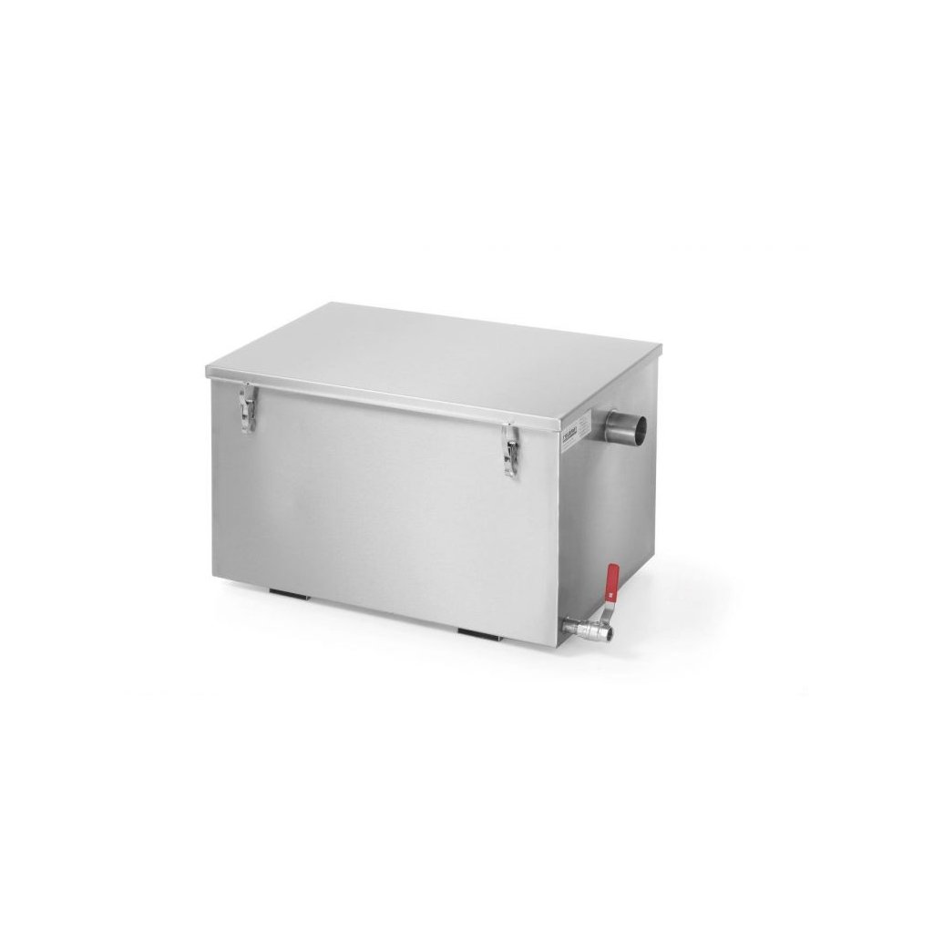 Zabraňuje upchávaniu kanalizácie tukom. Pre vnútorné použitie (umývanie riadu, kuchyne). Vyrobený z nehrdzavejúcej ocele. Veko s tesnením, uzavreté so 4 prackami. Vstup a výstup – pripojenie s priemerom 50mm. Dve vertikálne, vnútorné priečky na oddeľovanie tuku a kalu. Okrem toho, guľový ventil na vyprázdnenie komory na tuk. Kompaktná veľkosť.Dodatočné parametre