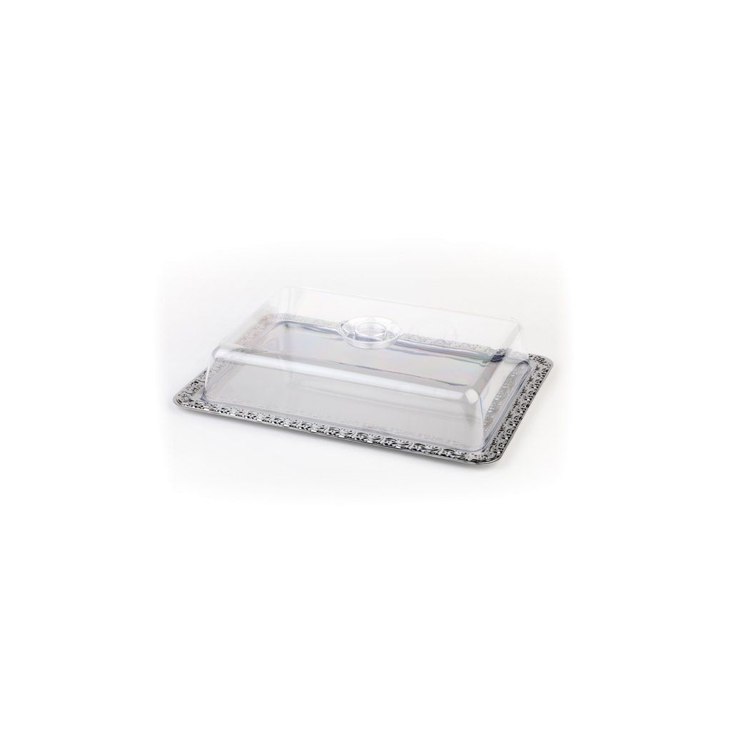 Súčasťou sady je: tácka s dekoratívnym okrajom, vyrobená z nehrdzavejúcej ocele v rozmere 420x310 mm a priehľadné plastové veko. Vhodný do umývačky riadu, môže sa stohovať.Dodatočné parametre