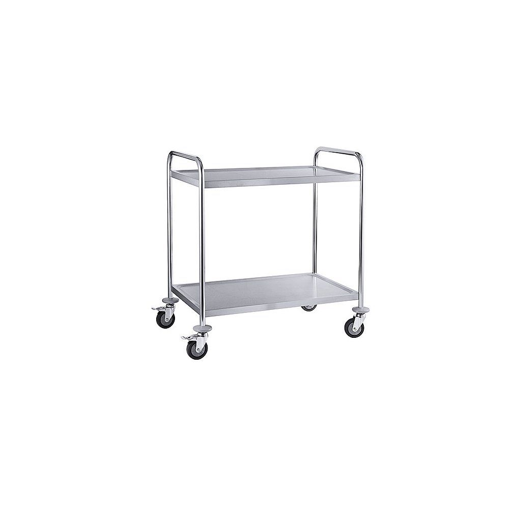 Servírovací vozík dvojposchodový vyrobený z nehrdzavejúcej ocele 18/0. Súčasťou sú 4 otáčacie kolieska s priemerom 125 mm, 2 z nich s brzdou. Nosnosť jednej police 40 kg. Rozmery políc 830x510 mm. Na samostatné zloženieDodatočné parametre