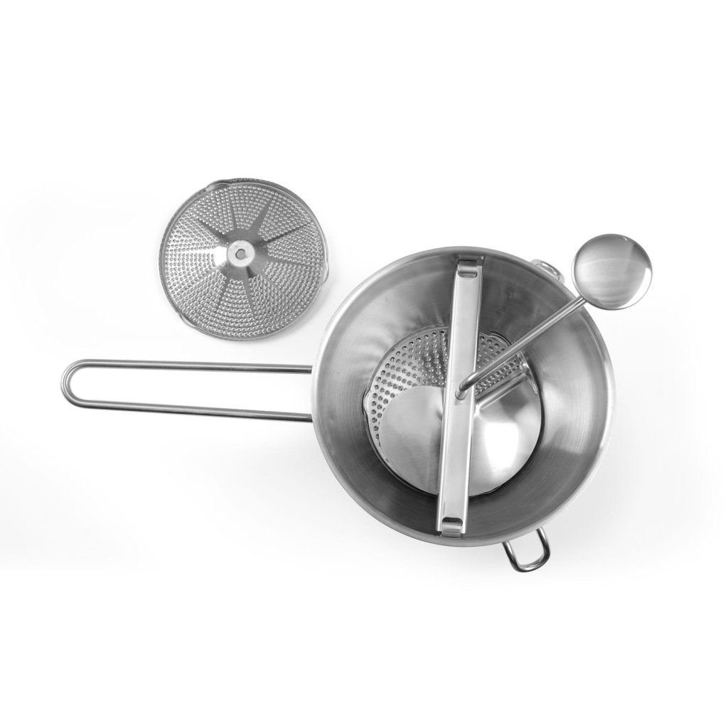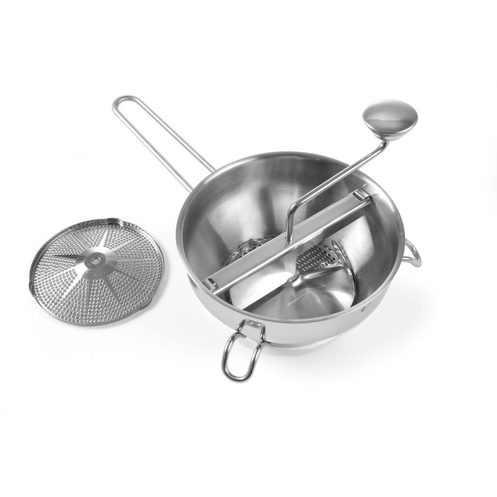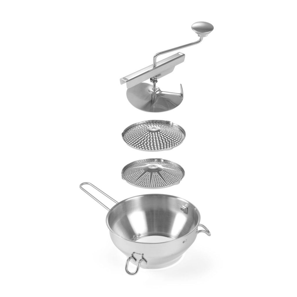 Ideálne na prípravu krémových polievok a paradajkového pretlaku – sito na pasírovanie zeleniny, vyrobené z nehrdzavejúcej ocele. Má dva disky v sade (hrubé a jemné). Možno umývať v umývačke riadu.Dodatočné parametre