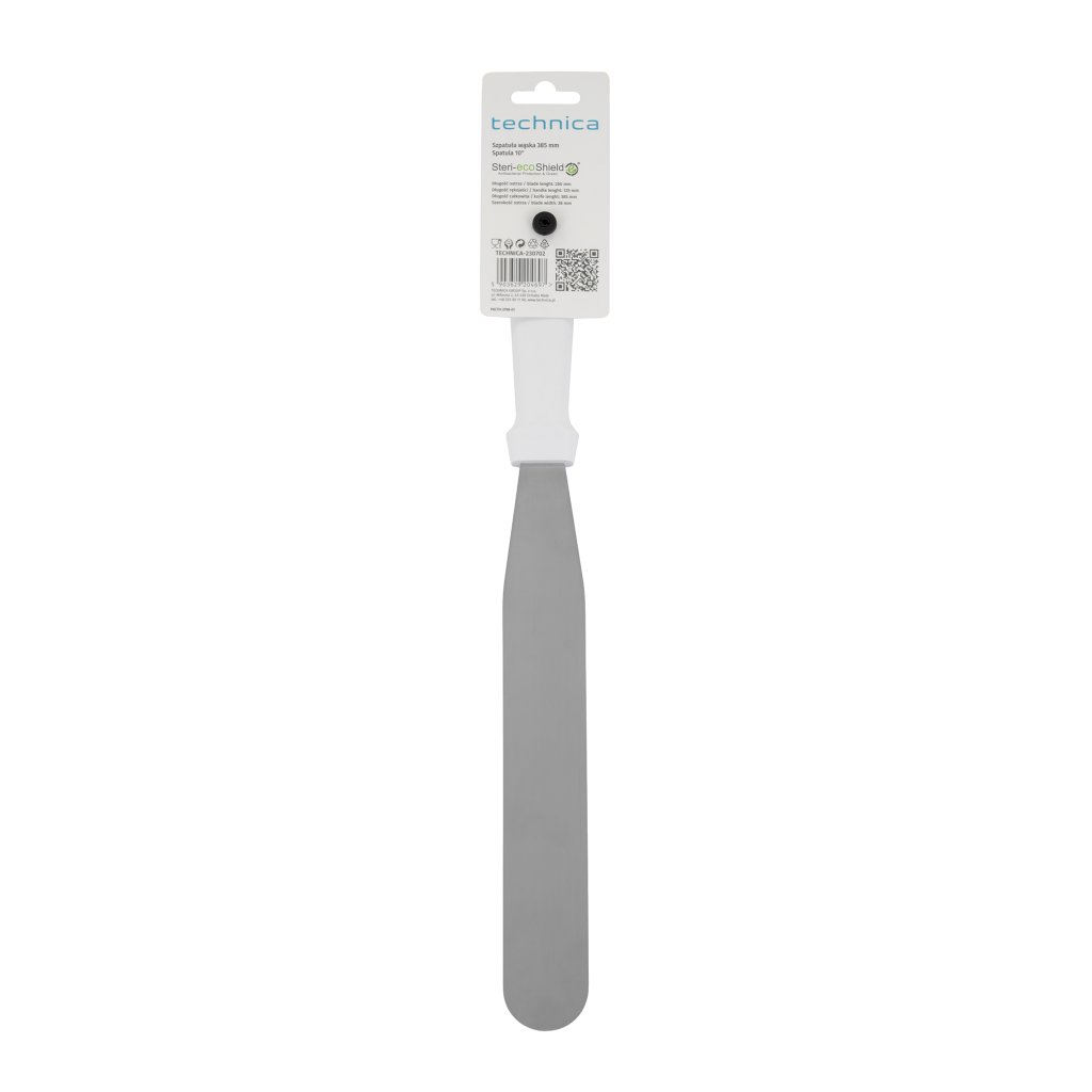 Úzka špachtľa Technica s celkovou dĺžkou 385 mm je nenahraditeľným kuchynským doplnkom v každej cukrárni, ktorý kombinuje funkčnosť s modernými technológiami. Navrhnutá pre intenzívne používanie, má zúbkovanú čepeľ vyrobenú z nemeckej legovanej ocele, čo jej zaisťuje výnimočnú odolnosť a presné fungovanie. Biela rukoväť z polypropylénu je pohodlná na používanie a dodatočná ochrana steri-eco shield zabraňuje vzniku baktérií, čo z nej robí ideálnu voľbu pre každú profesionálnu kuchyňu a cukráreň.