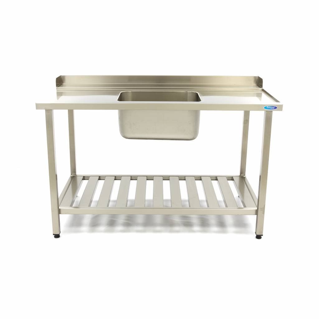 Tento profesionálny stôl na umývanie riadu s drezom je vyrobený z vysoko kvalitnej nehrdzavejúcej ocele a má praktickú bočnú a zadnú stenu. Na spodnej strane drezu je polica na odkladanie predmetov, napríklad košov do umývačky a umývacieho prostriedku. Tento stôl s umývačkou riadu má uprostred drez.