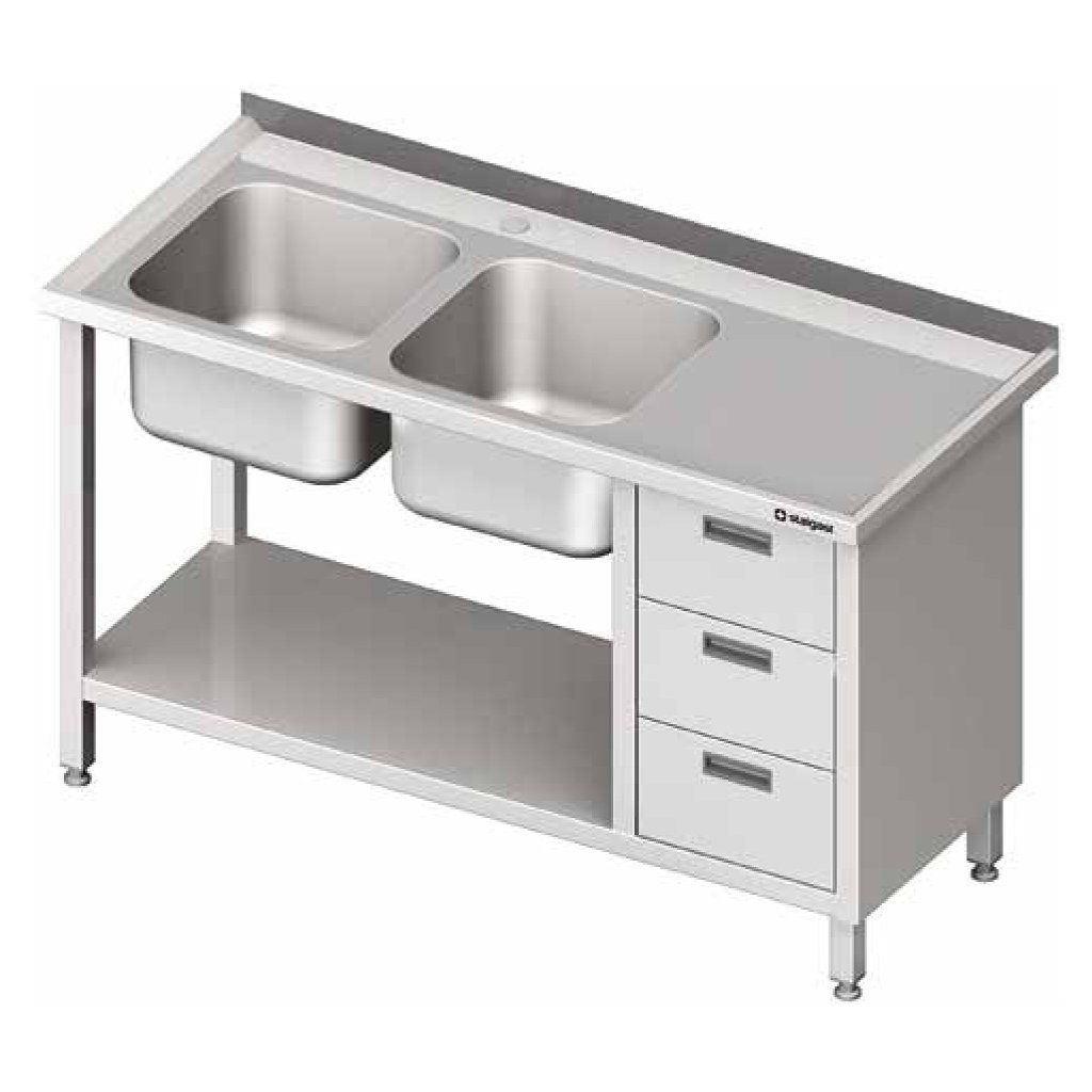 Stôl s dvojkomorovým drezom na ľavej strane s blokom troch zásuviek a policou 1700x700x850 mm | STALGAST, 981107170