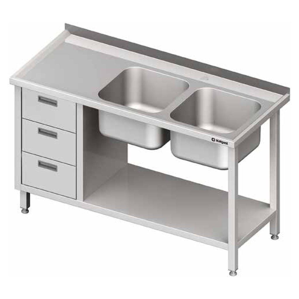 Stôl s dvojkomorovým drezom na pravej strane s blokom troch zásuviek a policou 1700x700x850 mm | STALGAST, 981097170