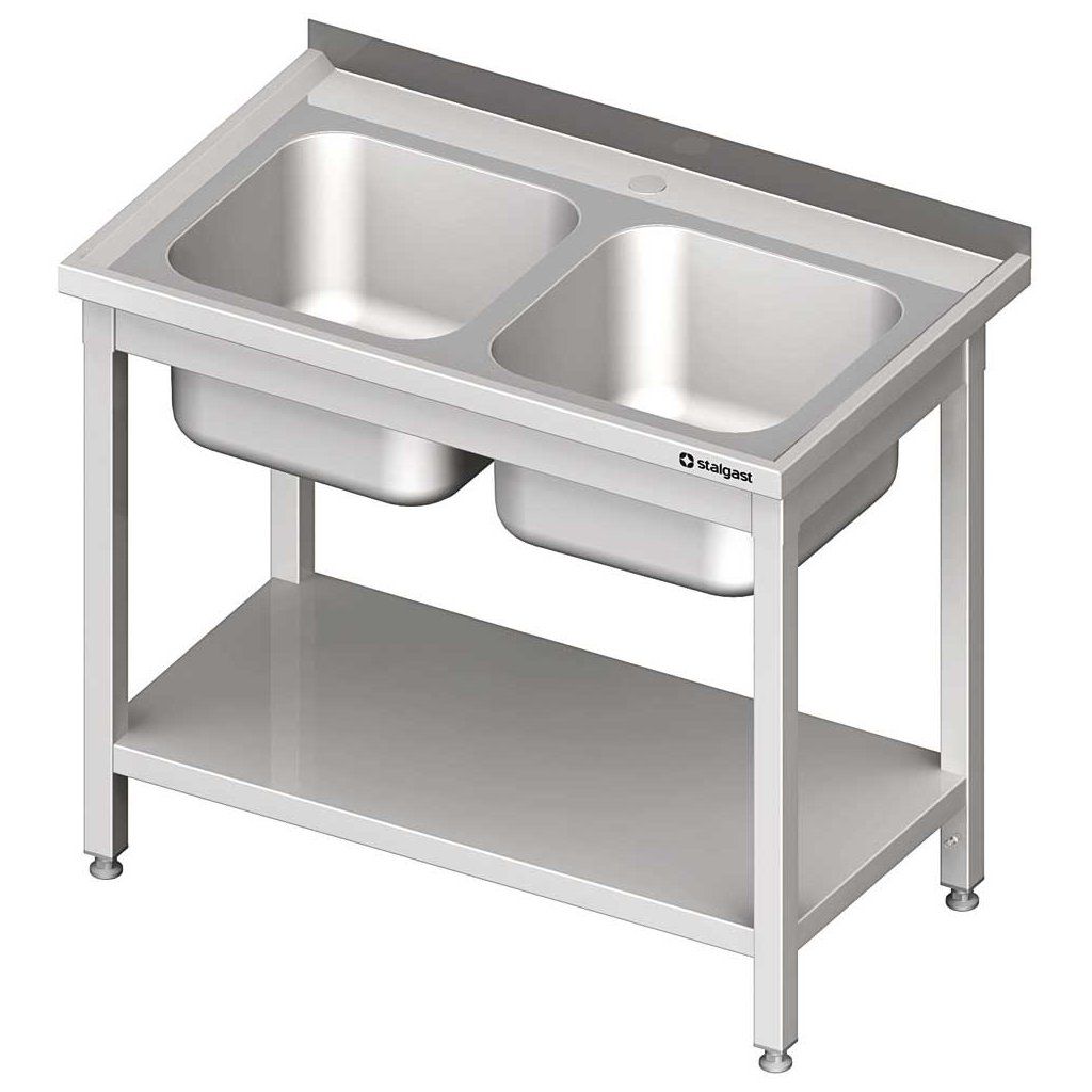 Stôl s dvojkomorovým drezom s policou 1000x700x850 mm | STALGAST, 980817100