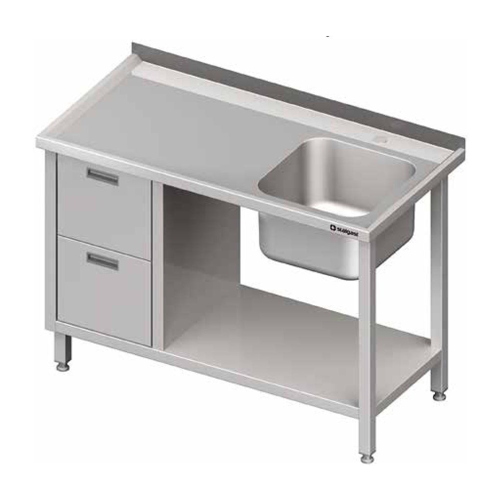 Stôl s jednokomorovým drezom z pravej strany a blokom dvoch zásuviek a policou 1400x700x850 mm | STALGAST, 980997140