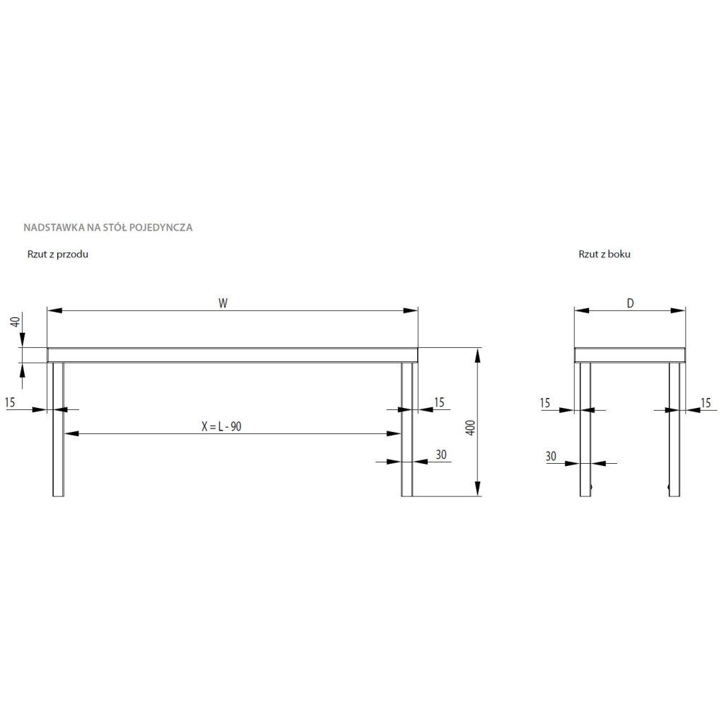 Stolový nadstavec jednoposchodový 700x400x400 mm vyrobený z kvalitnej nehrdzavejúcej ocele, zváraný. Spevnená polica. Montáž nadstavca v štandarde.Dodatočné parametre