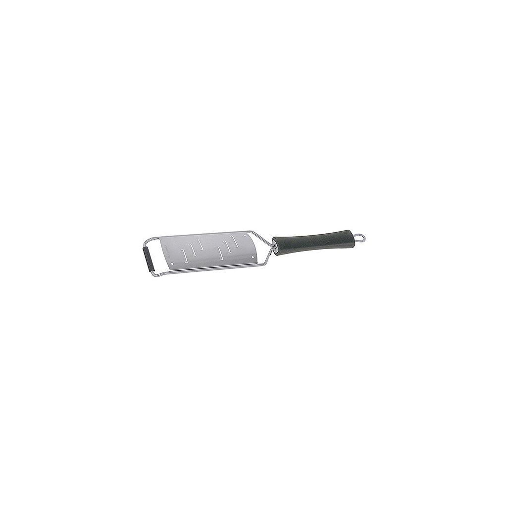 Strúhadlo z tvrdej nehrdzavejúcej ocele s okami s priemerom 22 mm, úchyt z čierneho polyamidu s možnosťou zavesenia. Protišmykové prvky. Vysoká kvalita. Vhodné do umývačky riadu.Dodatočné parametre