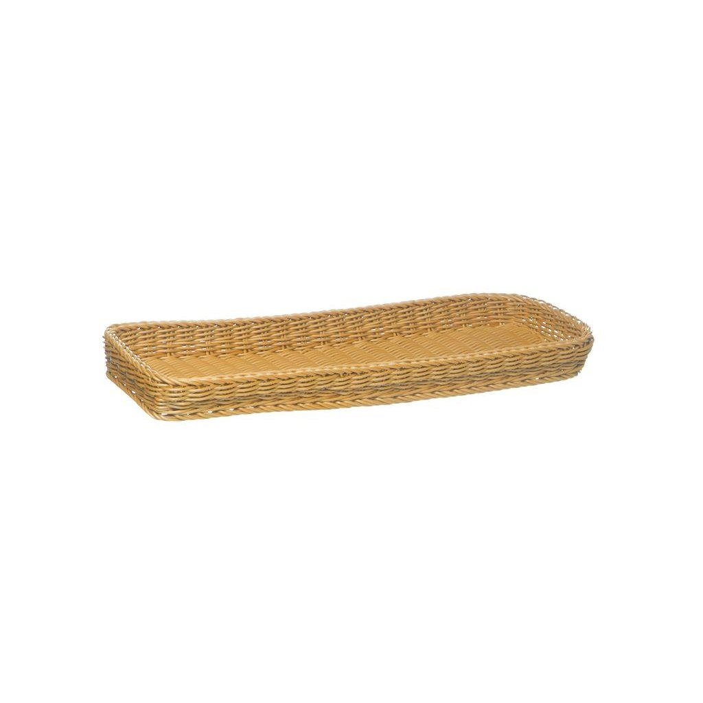 Servírovací podnos na pečivo a bagetky vyrobený z polypropylénu imitujúceho ratan. Odolný voči poškodeniu. Vhodný do umývačky riadu, môže sa stohovať.Dodatočné parametre