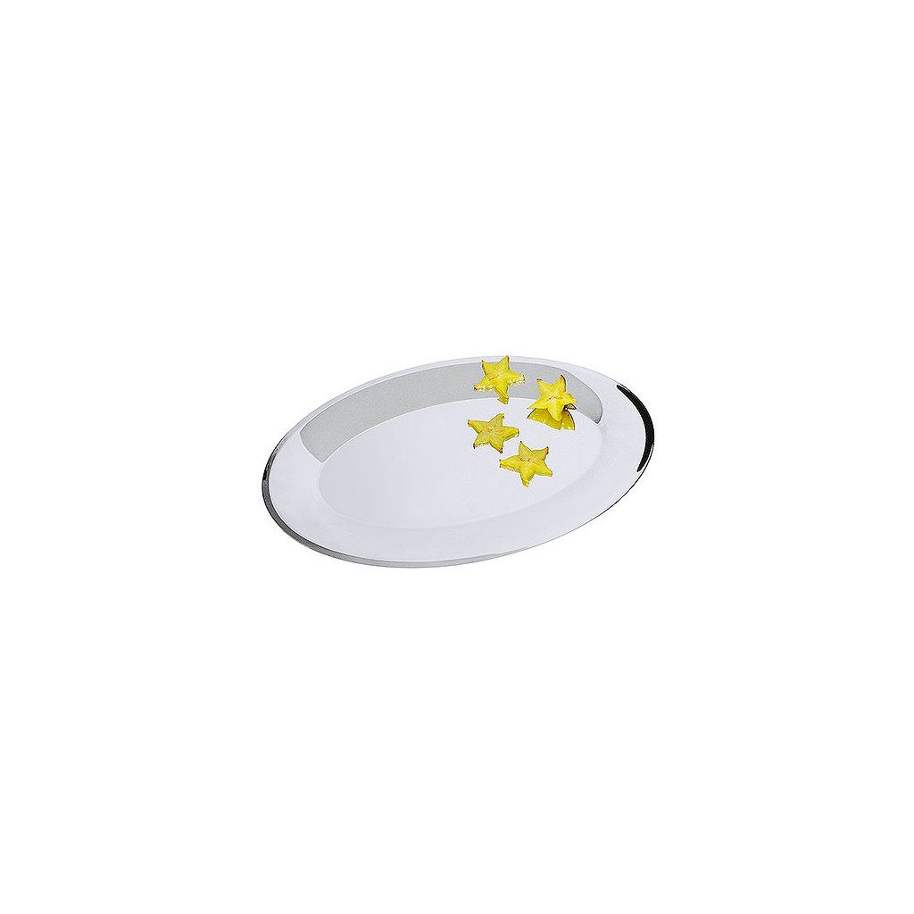 Oválny podnos je vyrobený z nehrdzavejúcej ocele s hladkým, širokým okrajom.Dodatočné parametre