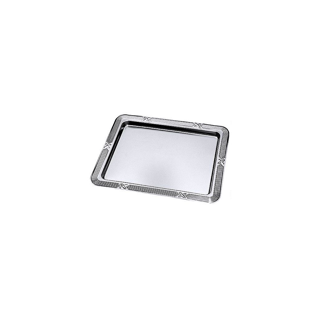Rautová tácka vyrobená z leštenej nehrdzavejúcej ocele s úchytmi a dekoračným okrajom.Dodatočné parametre