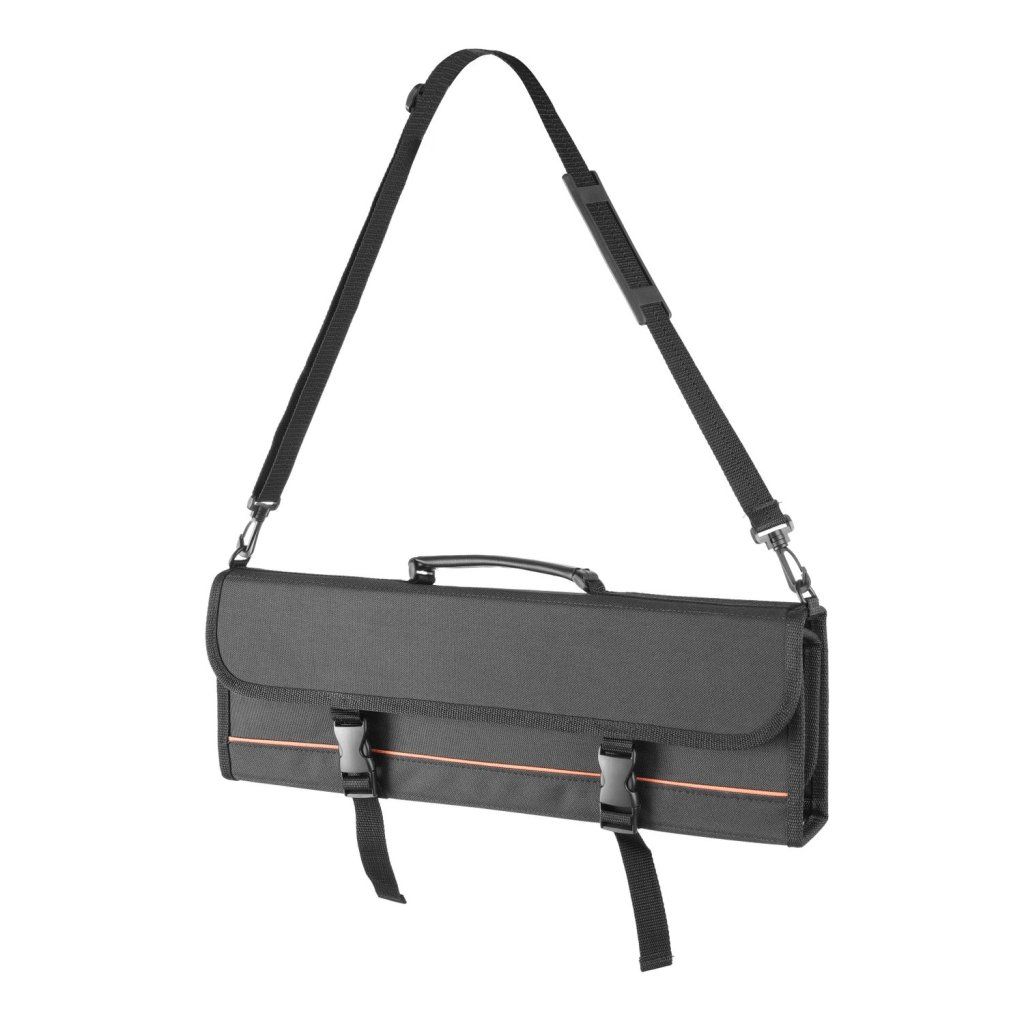 Kompaktná skladacia taška s veľkým priestorom pre nože a príslušenstvo.Pojme až 10 nožov (max. dĺžka 450 mm), nože držia na mieste pomocou gumičky.Prídavné puzdrá na zips alebo suchý zips chránia nože a zabraňujú ich kontaktu pri skladaní tašky. 1 vrecko na poznámkový blok, 4 malé vrecká na vizitky a 3 priehradky na drobné príslušenstvo alebo perá.Rozmery rozloženej tašky: 515x675 mmDĺžku ramenného popruhu je možné nastaviť od 770 mm do 1270 mm.Predáva sa bez nožovDodatočné parametre