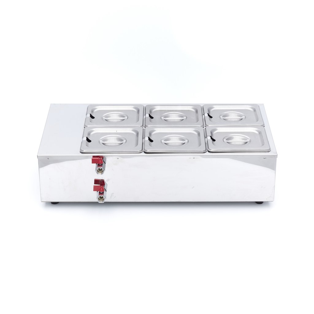 Táto tavička čokolády umožňuje naplniť šesť GN nádobiek čokoládou súčasne. Môžete tak rozpúšťať aj rôzne príchute čokolády naraz. Ak tak chcete urobiť, musíte pozorne sledovať teplotu. Biela čokoláda sa rozpúšťa pri 36 stupňoch, zatiaľ čo horká čokoláda sa rozpúšťa pri o niečo vyššej teplote. Môžete použiť špeciálnu čokoládu na rozpúšťanie, ale môžete tiež nakrájať tabuľku čokolády na malé kúsky a nechať ju rozpustiť.