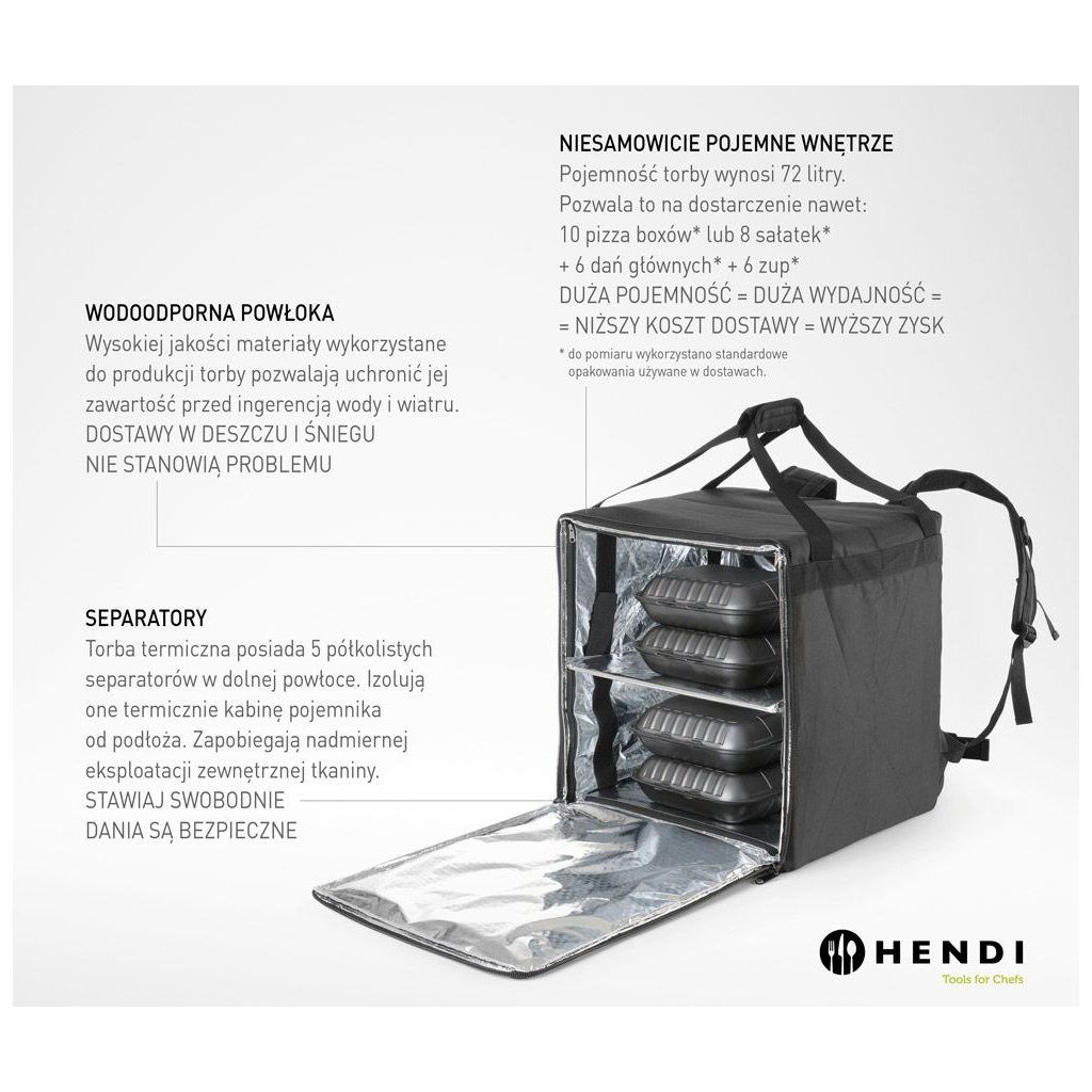 Odporúča sa na použitie v pizzeriách pri preprave objednávok.Veľké, nastaviteľné, polstrované ramenné popruhyPolstrovaný chrbtový panel pre väčšie pohodlieNastaviteľný bedrový pás pre väčšiu stabilituVeľké polstrované rukoväte na prenášanieĽahkéVodeodolnosť vďaka použitiu odolného polyesteru 600D2 vrstvy izolácie komory: PE pena a hliníková fólia.Veľká priehradka s nastaviteľnou policou na suchý zipsJednu stranu batohu je možné otvoriť zipsom pre ľahký prístup.Priehľadné vrecko na účtenkyReflexný pásik umiestnený na vonkajšej strane pre väčšiu bezpečnosť.Buďte prvý, kto napíše príspevok k tejto položke.
