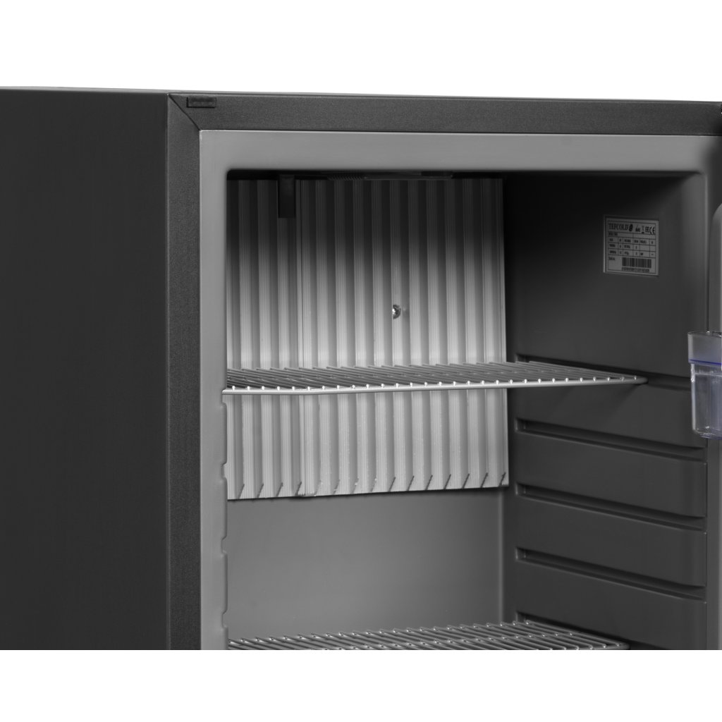 Minibar s plnými dverami, čierne opláštenie Absorpčné minibary rady TM sú obľúbenou voľbou pre hotelové izby a zasadacie miestnosti. Vďaka tichej prevádzke absorpčného chladiaceho systému nebudú vaši hostia rušiť. Minibar je vybavený vnútorným LED osvetlením, ktoré sa rozsvieti pri otvorení dverí. Zariadenie je možné ľahko zabudovať do existujúceho interiéru. Vyberajte medzi modelmi v rôznych veľkostiach s plnými alebo presklenými dverami.Dodatočné parametre