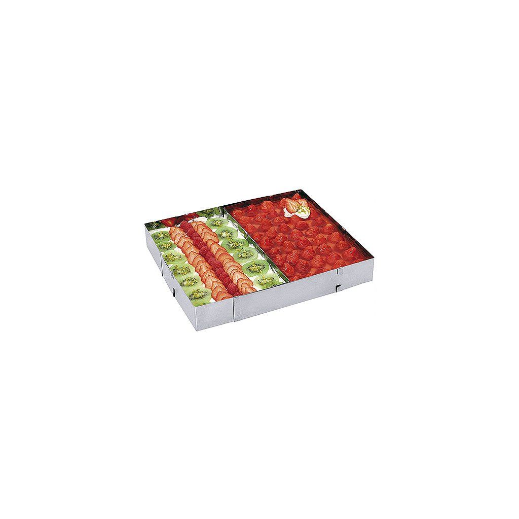 Tortová forma vyrobená z nehrdzavejúcej ocele s regulovateľnými bokmi a odnímateľnými okrajmi.Dodatočné parametre