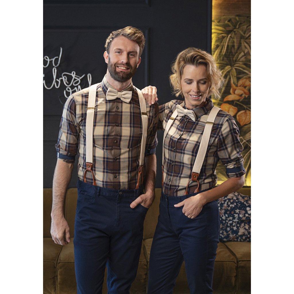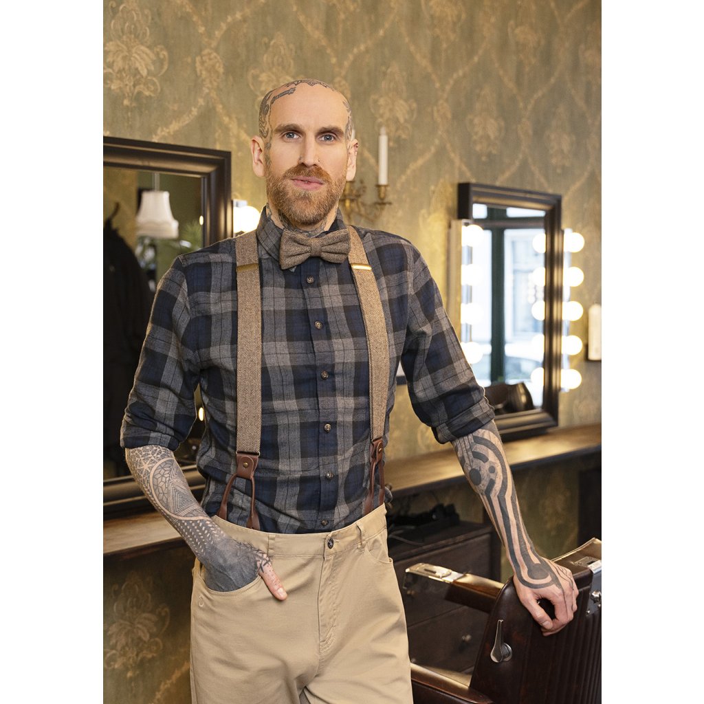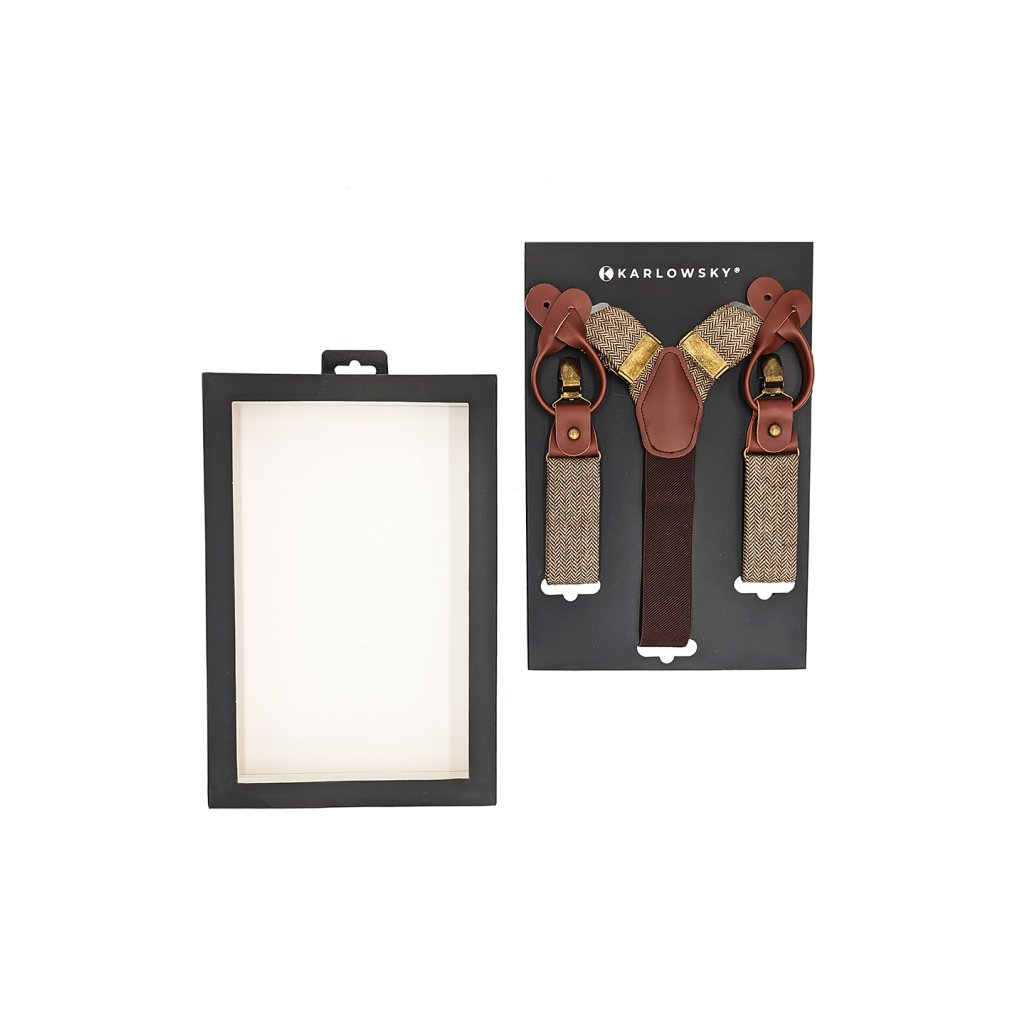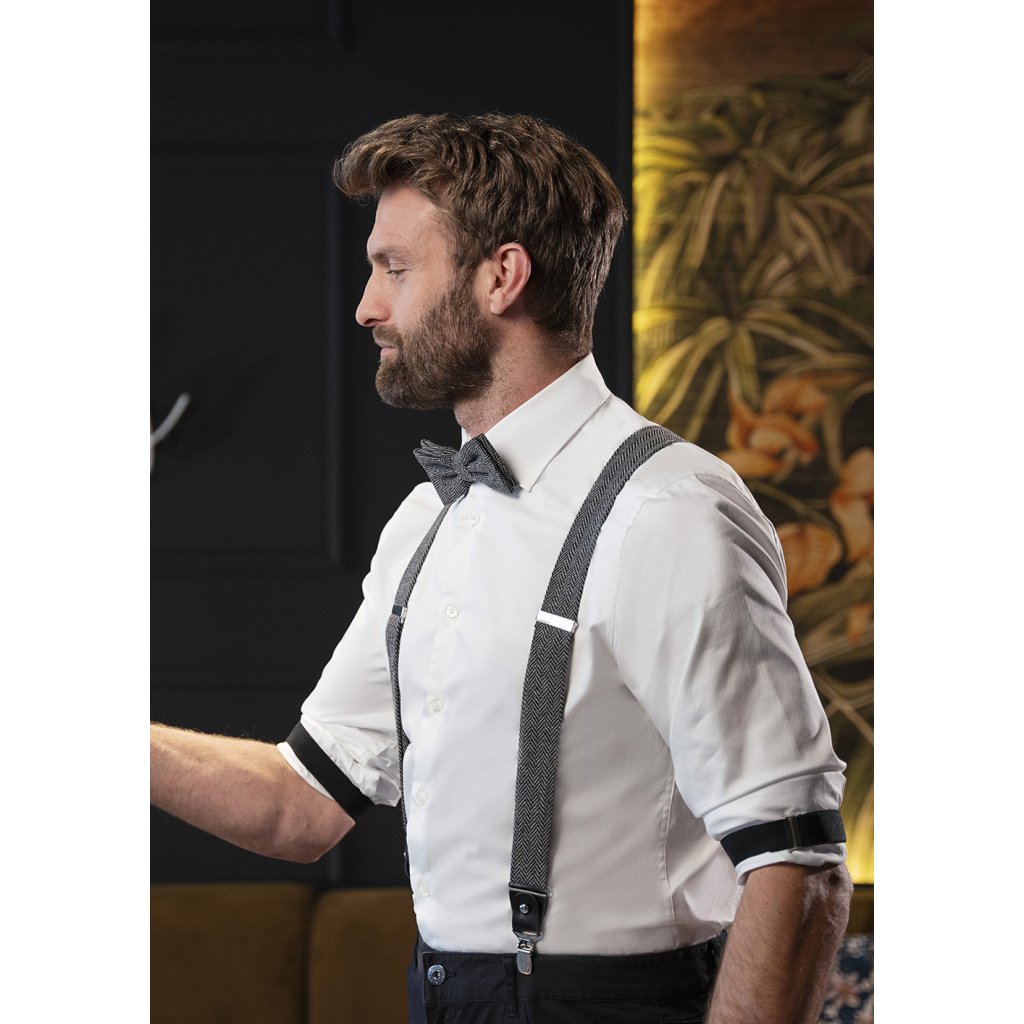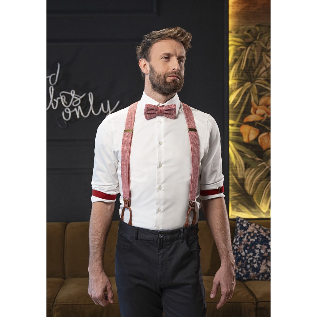 | rozmery: 3,5 x 120 cm (šírka popruhu x dĺžka) | štýlové mestské traky so vzorom rybej kosti (Herringbone) | všestranné použitie, napr. v gastronómii, barmanskom remesle, hoteloch, kaderníctve a mnohých ďalších odboroch | štýlový doplnok pre mnoho variantov oblečenia na voľný čas | s elastickými pásikmi a praktickými sponami v antickej mosadze pre plynulé nastavenie dĺžky pre optimálne padnutie | upevnenie k nohaviciam buď pomocou slučiek z pravej kože na gombíky (sada gombíkov nie je súčasťou balenia) alebo pomocou sponiek v antickej mosadze pre rýchle a jednoduché upevnenie | tvar Y: 2 pásiky vpredu (65 % polyester / 35 % viskóza), 1 pásik vzadu (85 % polyester / 15 % elastan) | vysoko kvalitné aplikácie z pravej kože v zodpovedajúcej farbe | ideálne pre nasledujúce druhy personalizácie: razba a laserové gravírovanie (na chlopni), laserové gravírovanie na sponách a svorkách a DTF tlač na elastických pásoch | zodpovedajúci výrobok: motýlik Urban-Herringbone - AK 9 (číslo výrobku výrobcu)Dodatočné parametre