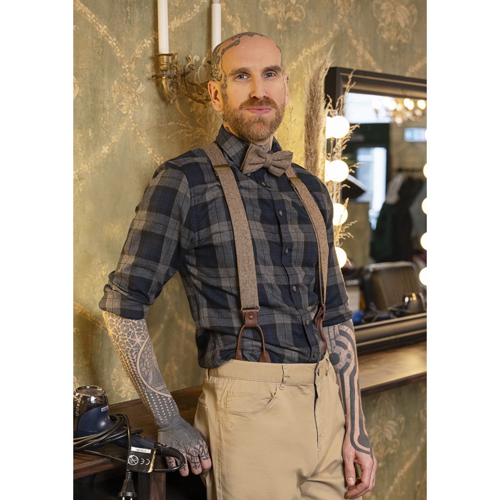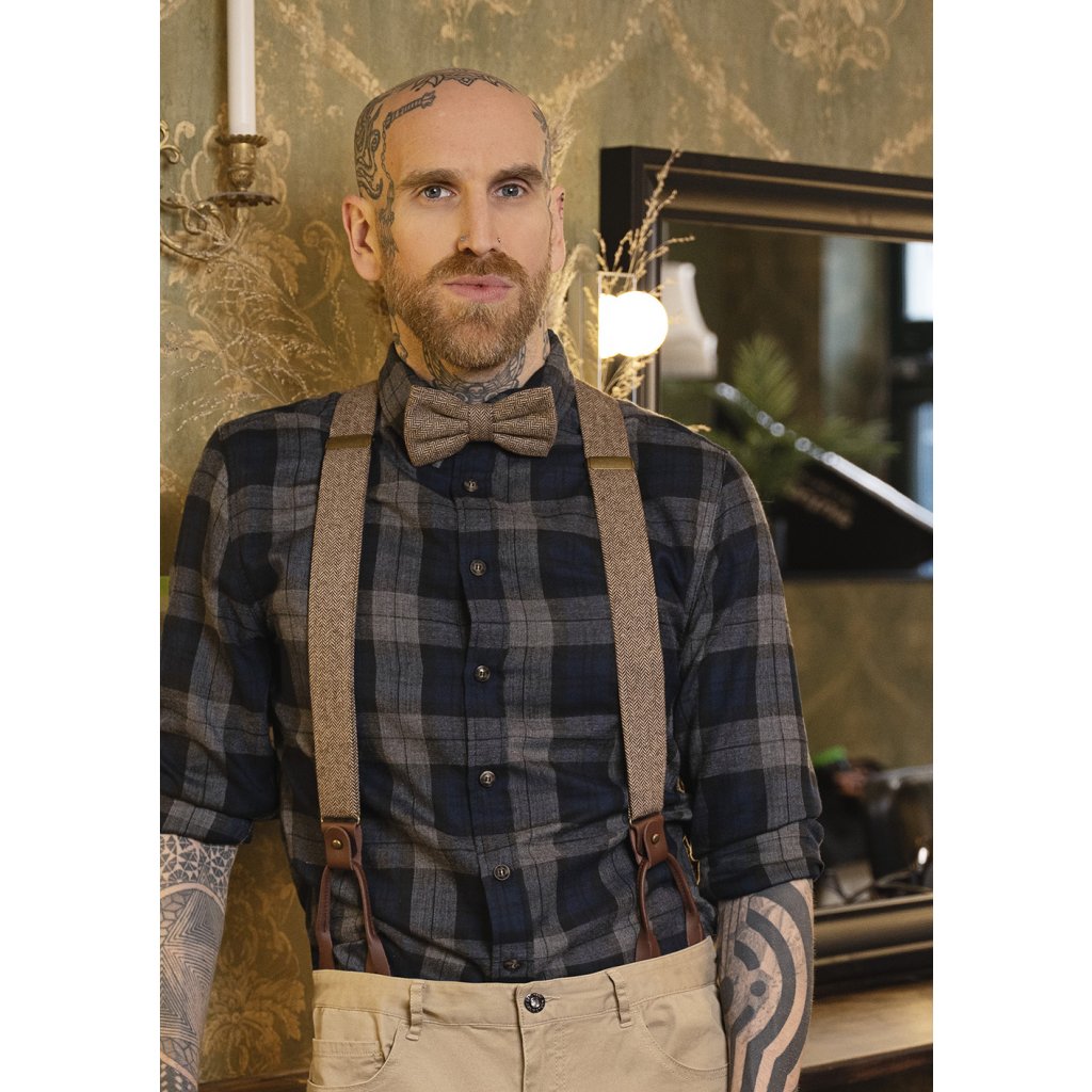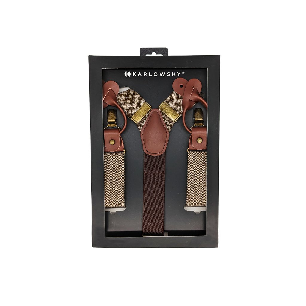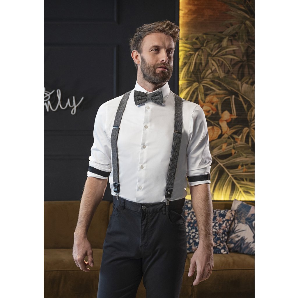 | rozmery: 3,5 x 120 cm (šírka popruhu x dĺžka) | štýlové mestské traky so vzorom rybej kosti (Herringbone) | všestranné použitie, napr. v gastronómii, barmanskom remesle, hoteloch, kaderníctve a mnohých ďalších odboroch | štýlový doplnok pre mnoho variantov oblečenia na voľný čas | s elastickými pásikmi a praktickými sponami v antickej mosadze pre plynulé nastavenie dĺžky pre optimálne padnutie | upevnenie k nohaviciam buď pomocou slučiek z pravej kože na gombíky (sada gombíkov nie je súčasťou balenia) alebo pomocou sponiek v antickej mosadze pre rýchle a jednoduché upevnenie | tvar Y: 2 pásiky vpredu (65 % polyester / 35 % viskóza), 1 pásik vzadu (85 % polyester / 15 % elastan) | vysoko kvalitné aplikácie z pravej kože v zodpovedajúcej farbe | ideálne pre nasledujúce druhy personalizácie: razba a laserové gravírovanie (na chlopni), laserové gravírovanie na sponách a svorkách a DTF tlač na elastických pásoch | zodpovedajúci výrobok: motýlik Urban-Herringbone - AK 9 (číslo výrobku výrobcu)Dodatočné parametre