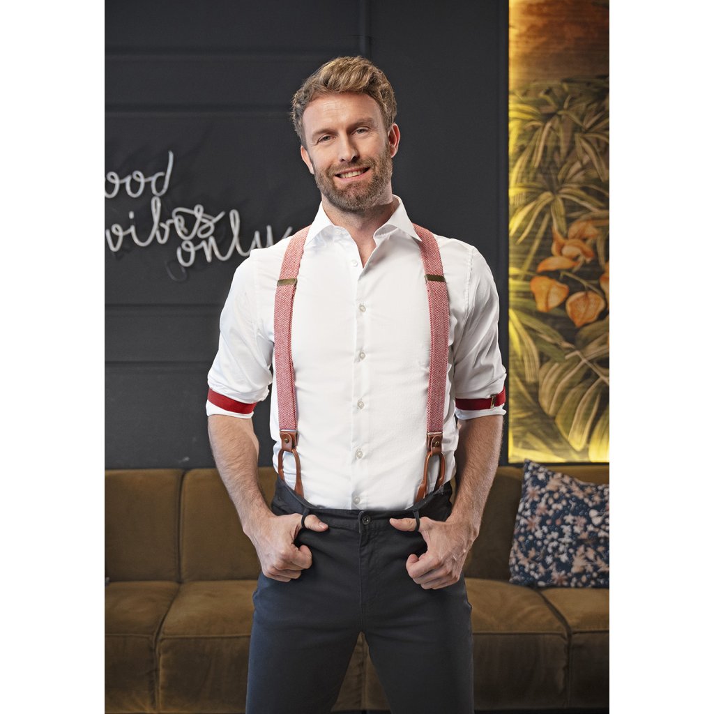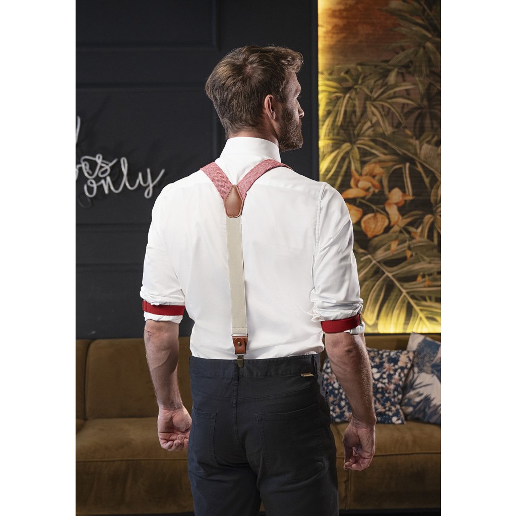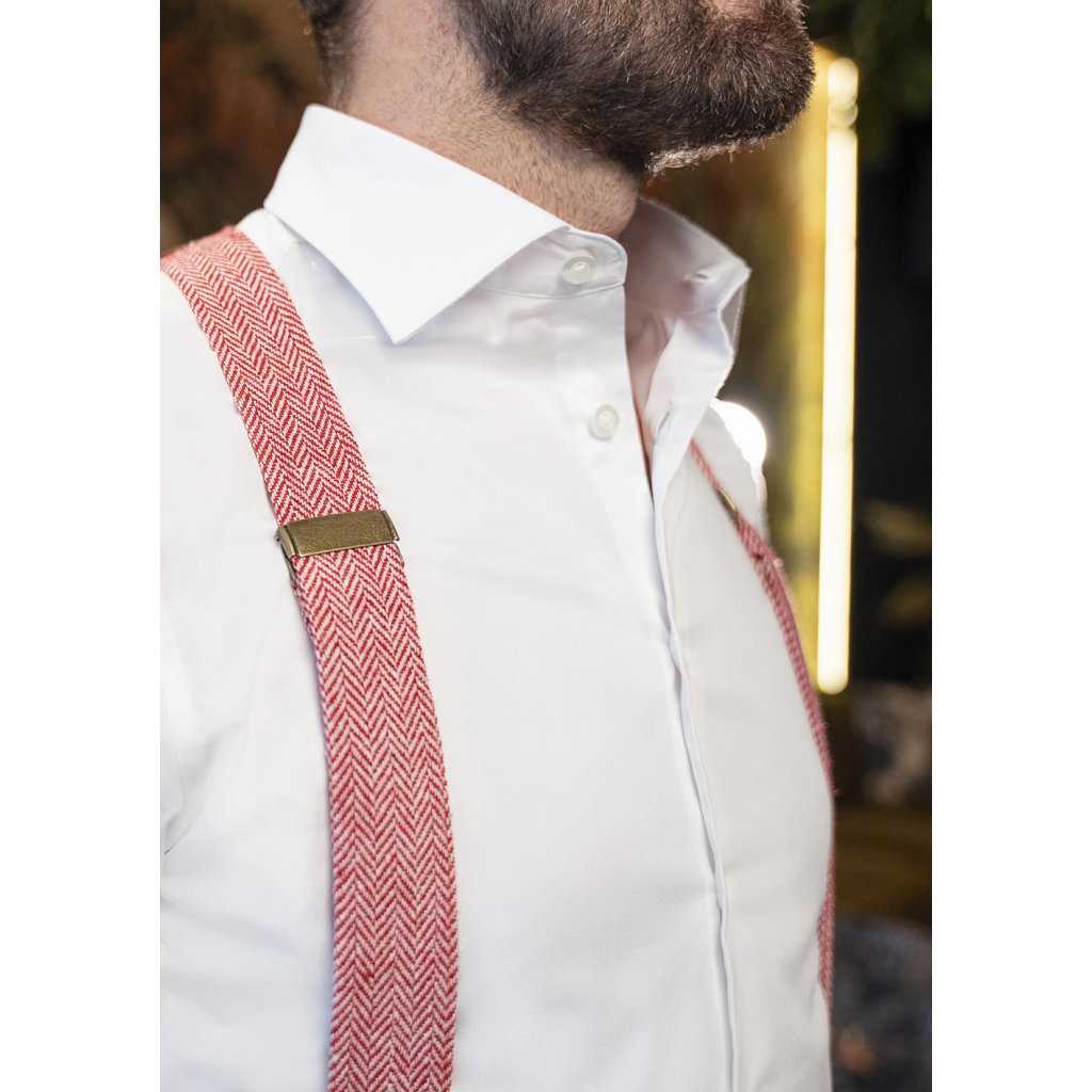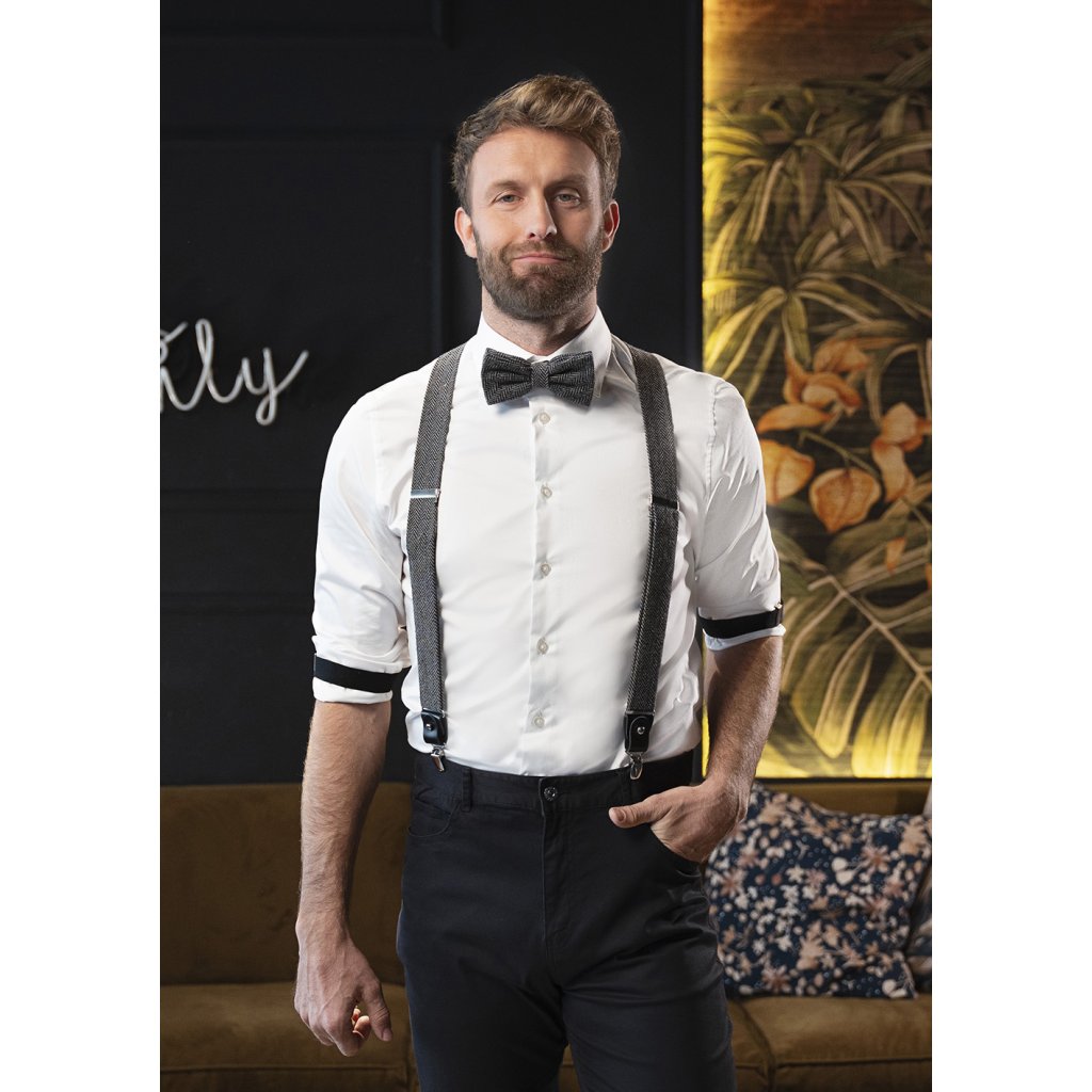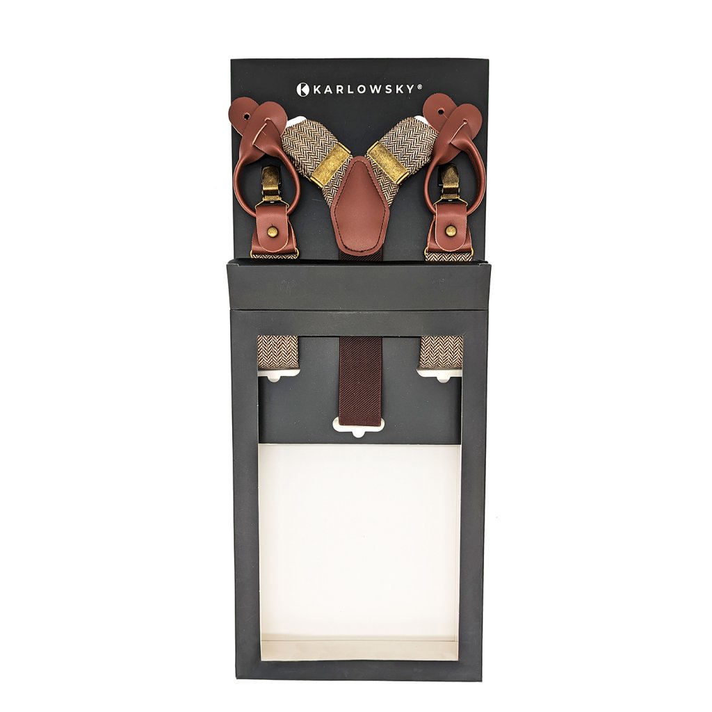 | rozmery: 3,5 x 120 cm (šírka popruhu x dĺžka) | štýlové mestské traky so vzorom rybej kosti (Herringbone) | všestranné použitie, napr. v gastronómii, barmanskom remesle, hoteloch, kaderníctve a mnohých ďalších odboroch | štýlový doplnok pre mnoho variantov oblečenia na voľný čas | s elastickými pásikmi a praktickými sponami v antickej mosadze pre plynulé nastavenie dĺžky pre optimálne padnutie | upevnenie k nohaviciam buď pomocou slučiek z pravej kože na gombíky (sada gombíkov nie je súčasťou balenia) alebo pomocou sponiek v antickej mosadze pre rýchle a jednoduché upevnenie | tvar Y: 2 pásiky vpredu (65 % polyester / 35 % viskóza), 1 pásik vzadu (85 % polyester / 15 % elastan) | vysoko kvalitné aplikácie z pravej kože v zodpovedajúcej farbe | ideálne pre nasledujúce druhy personalizácie: razba a laserové gravírovanie (na chlopni), laserové gravírovanie na sponách a svorkách a DTF tlač na elastických pásoch | zodpovedajúci výrobok: motýlik Urban-Herringbone - AK 9 (číslo výrobku výrobcu)Dodatočné parametre