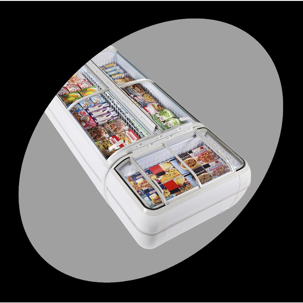 Mraziaci ostrov, čierna Séria ostrovov TWIN, určené pre supermarkety, sa vyznačujú inovatívnym dizajnom, ktorý je ideálny pre predajne s obmedzeným priestorom. Jeden ostrov TWIN má rovnaký objem ako dve štandardné truhlicové mrazničky / chladničky rovnakej dĺžky umiestnené chrbtom k sebe. Pretože model TWIN zaberá menej podlahovej plochy, je výsledkom viac úložného priestoru na menšej ploche. Má tiež skvelú funkciu dvoch chladiacich systémov pre redundanciu.Dodatočné parametre
