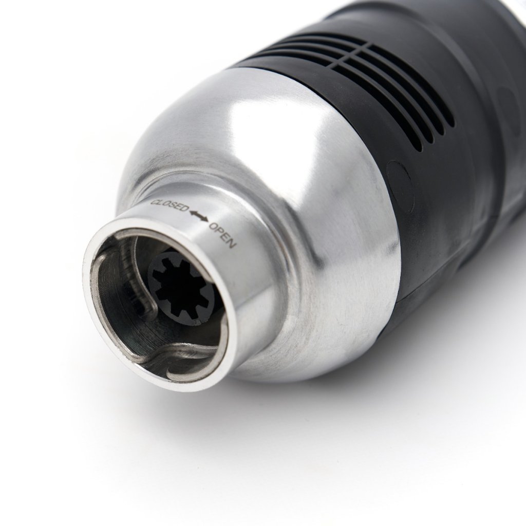 Tento model je vybavený 450W ventilačným motorom, ktorý je dostatočne silný na nepretržité používanie v náročných kuchyniach. Aj napriek svojim kompaktným rozmerom poskytuje spoľahlivý výkon so vstavanou tepelnou ochranou proti preťaženiu pre väčšiu bezpečnosť. Ergonomická rukoväť s pogumovaným držadlom zaisťuje vynikajúce ovládanie a pohodlie aj pri dlhšom používaní. Umiestnením na prednej strane môžete voliť rýchlosť, zatiaľ čo intuitívne ovládanie umožňuje bezproblémové ovládanie jednou rukou.