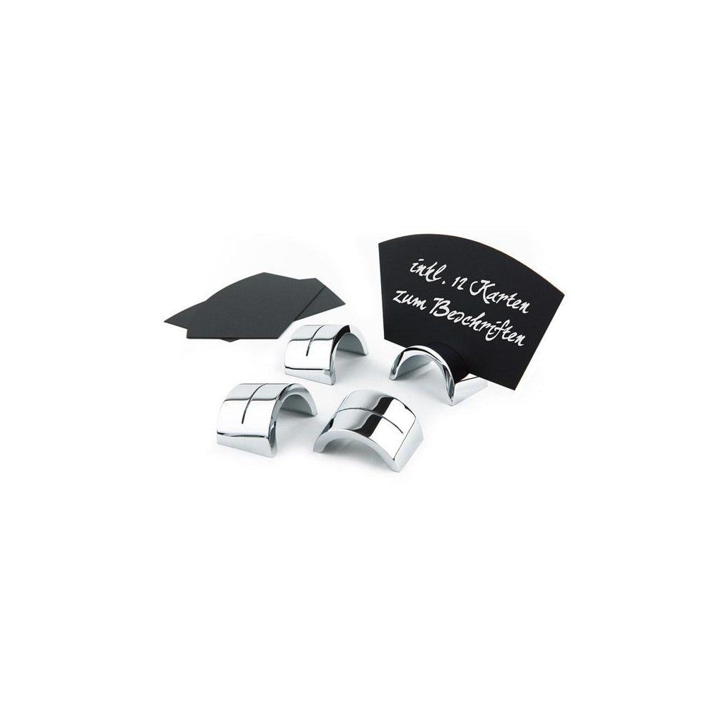 Vhodné na označenie potravín na rautoch a bufetoch. Súčasťou je 6 podstavcov vyrobených z nehrdzavejúcej ocele a 12 štítkov z čierneho materiálu 100x57 mm. Praktické a dekoratívne zároveň