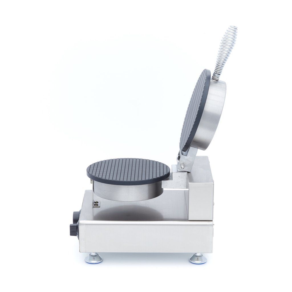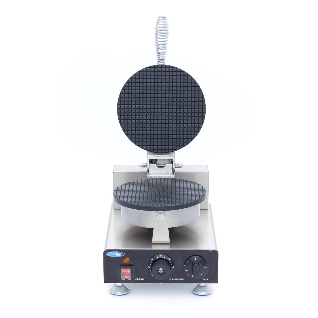 S týmto vaflovačom na kornútky môžete ľahko a rýchlo pripraviť zmrzlinové kornútky na použitie v akomkoľvek stravovacom zariadení. Výkonné výhrevné teleso zaisťuje rýchle zahriatie dosky, takže ju môžete začať rýchlo používať. Vďaka nepriľnavému povrchu hliníkovej dosky sa vafle nepripaľujú. Tento vaflovač má tiež termostat, ktorý umožňuje nastaviť teplotu v rozmedzí 50 až 300 °C. Kontrolka ukazuje, kedy je vaflovač zahriaty a pripravený na použitie. Praktický časovač sa tiež veľmi ľahko ovláda a zaisťuje, že sa vafle nepripália. Pevná rukoväť uľahčuje otváranie a zatváranie vaflovača. Týmto spôsobom môžete rýchlo a bezpečne vyrobiť veľké množstvo kužeľových vaflí v rýchlom slede.