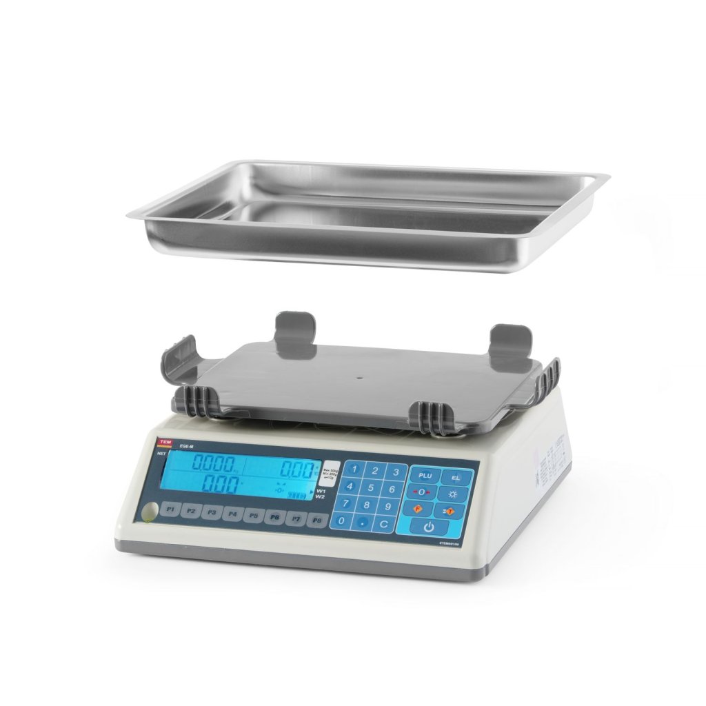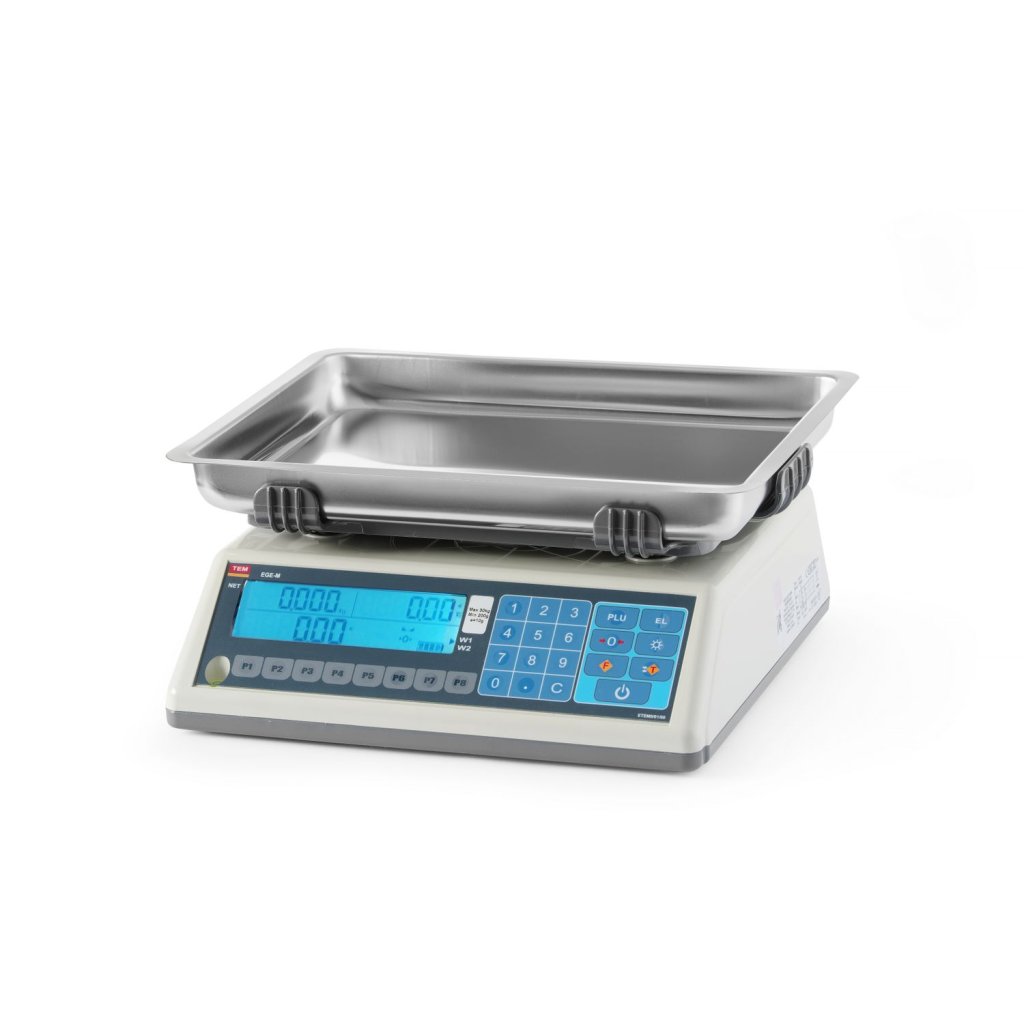 Dokonalá presná váha je vhodná pre majiteľov lahôdok, obchodov s potravinami, mäsiarstva, zeleniny, lekární a ďalších maloobchodných predajní aj pošty. Jednomiestna stupnica: do 15 kg s delením po 5 g, do 30 kg s delením po 10 g - v závislosti od modelu. Veľký šesťmiestny displej LCD s tromi ukazovateľmi: hmotnosť, maloobchodná cena a celková cena. Displej viditeľný zo strany zákazníka aj obsluhy. Počet položiek uložených v pamäti (PLU): 250. Do ponuky rýchleho prístupu je možné priradiť až 8 článkov. Panel s funkčnými tlačidlami: okrem iného numerická klávesnica, nastavenie, nula, tára a podsvietenie displeja. Rozsah váženia: 100 g - 30 kg. Výkonná duálna batéria 6 V, 9 Ah až na 200 hodín prevádzky. Sieťový adaptér 7,8 V / 1,2 A je súčasťou dodávky. Hlboká miska na váhu z nehrdzavejúcej ocele, stabilne umiestnená v špeciálnych držiakoch. Vnútorný rozmer panvy: 225x295x(V)32 mm. Základný kryt je vyrobený z ABS. Vstavaná vodováha. Váha s primárnou legalizáciou, pripravená na použitie ihneď po vybalení.Buďte prvý, kto napíše príspevok k tejto položke.