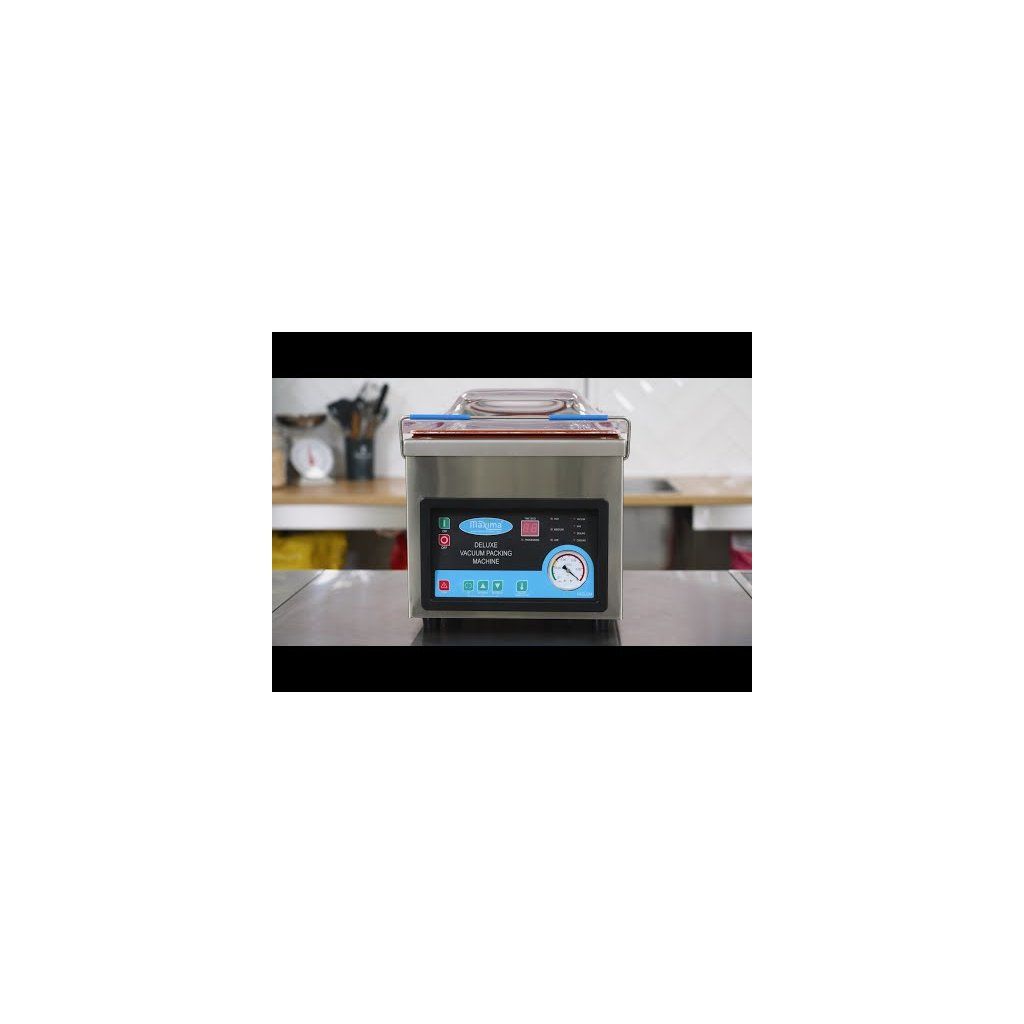 Aby sa zabránilo plytvaniu potravinami a optimálne sa využil priestor v chladničkách a mrazničkách, je v kuchyniach verejného stravovania nepostrádateľný stroj na balenie potravín. Tento baliaci stroj je vhodný pre veľké vákuové vrecká s rozmermi až 40 x 50 cm. Ide o plne automatizovaný proces, pri ktorom vákuový baliaci stroj vyrába vzduchotesné a kompaktné obaly. Vzduchotesné uzavretie zabraňuje vzniku popálenín pri zmrazovaní výrobkov. Tento baliaci stroj je extra veľký stolný model, ktorý sa dá ľahko umiestniť na pracovnú dosku alebo stôl.