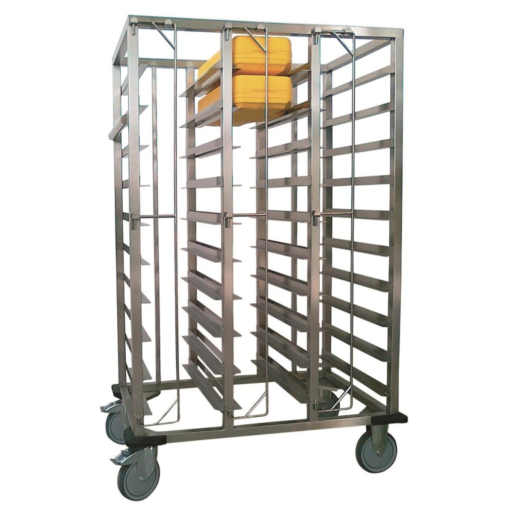 Jednoduchý vozík na transport tabletov vyrobený z chrómniklovej ocele 18/10bez opláštenia, bodované lišty, zatváranie vozíka jednoduchými dvierkami na zarážku, rúrkové madlo na krátkej strane vozíka, rohové nárazníky, 4 otočné kolieska s priemerom 150 mm, z toho 2 s brzdou, rozmery (mm): 945x595x1470, kapacita: 30, Hmotnosť (kg): 53Buďte prvý, kto napíše príspevok k tejto položke.