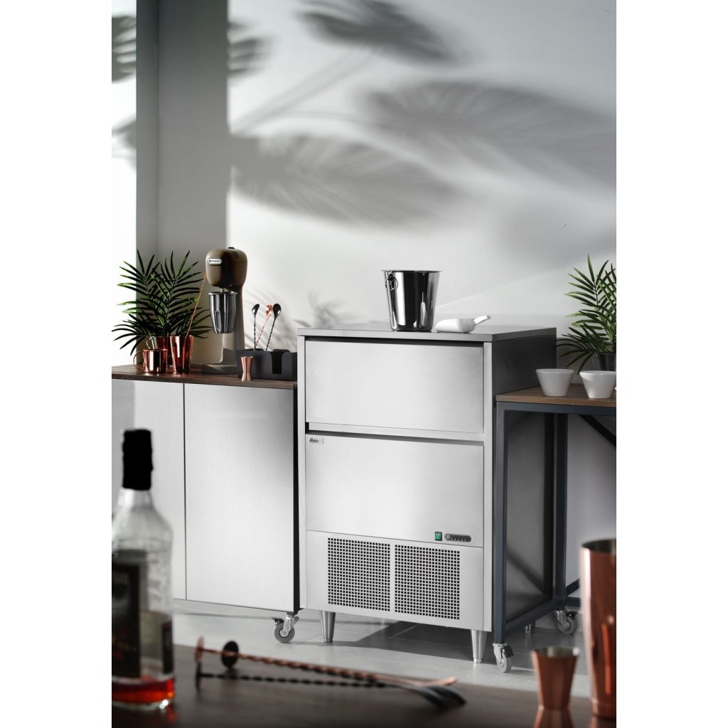 Puzdro je vyrobené z nehrdzavejúcej ocele. Vytvára číre kocky ľadu, ktoré sa topia pomalšie ako iné druhy ľadu. Vzduchom chladené - statické chladenie s ventilátorom. Indikátory nízkej hladiny vody a plnej nádoby na ľad. Funkcia automatického odmrazovania a automatického čistenia. Kapacita nádoby na ľad: 45 kg. Výrobná kapacita: 80 kg/24 h. Chladivo: R290.Buďte prvý, kto napíše príspevok k tejto položke.