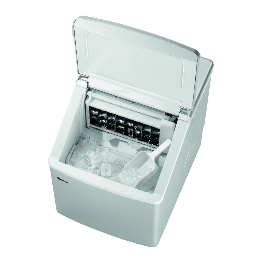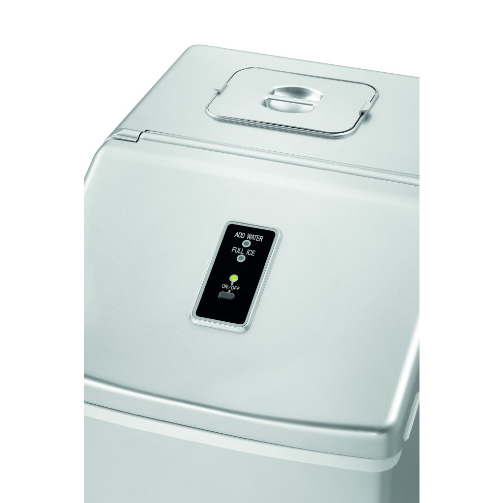 Výrobník kociek ľadu "Compact Ice K":- sivý plastový kryt,- Prepínač veľkosti kociek ľadu (tvar kocky): S malé - L veľké,- Kompaktný výrobník kociek ľadu na výrobu priehľadných kociek ľadu,- Výroba: 24 kociek za cyklus,- množstvo náplne: 1,5 litra,- kapacita: približne 10 kg / 24 hodín,- nádoba na ľad: cca 1 kg,- príkon: 150 W / 230 V 50 Hz,- rozmery: Š 306 x H 365 x V 360 mm,- hmotnosť: 12,25 kg,- zariadenie nie je určené na nepretržitú prevádzku v priemyselných prevádzkach.Dodatočné parametre