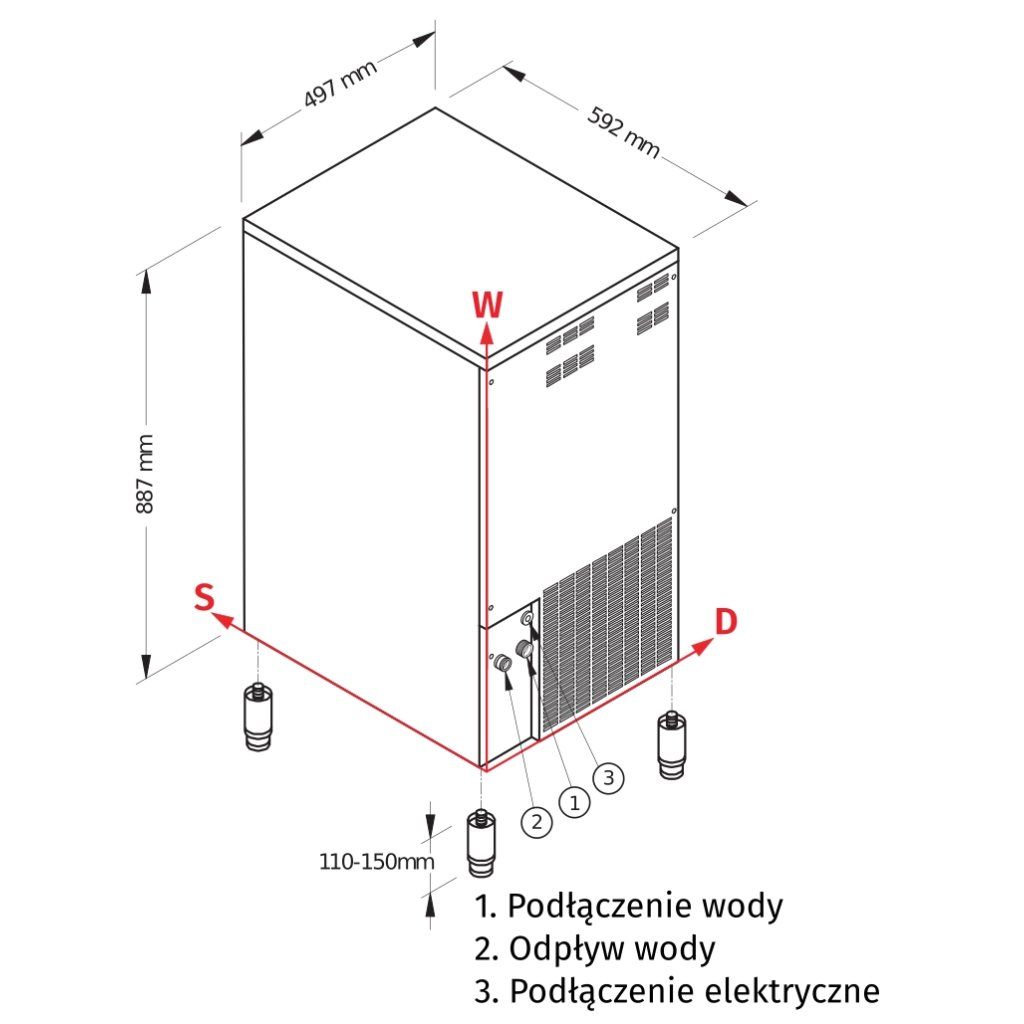 • Rad SL je rad špičkových profesionálnych výrobníkov ľadových kociek, ktoré sú ideálne pre krčmy, reštaurácie a hotely• Model je vyrobený z nehrdzavejúcej ocele• Dvierka násypky sú vyrobené z odolného ABS plastu• Izolované výsuvné dvere• V súlade s RoHS• Podpultový model• Vzduchom chladený model• Kocky sú vyrábané metódou striekania• Plná krištáľová kocka• Elektromechanická prevádzka• Zariadenia s týmto typom chladenia spotrebujú až 8-krát viac vody ako vzduchom chladené výrobníky ľadu.• Zariadenie je bezporuchové, ľahko sa používa, šetrí energiu a je účinné s vstavanou miskou na ľad• Veľkou výhodou výrobníka ľadových kociek SL je tvarový, relatívne malý tvar vyrobenej kocky s hmotnosťou 17 g, čo má vplyv na estetickú hodnotu podávaných nápojov.• Puzdro z kefovanej nehrdzavejúcej ocele AISI 304• Systém čistenia• Spotreba vody 4 l / kg• Jednoduché čistenie vďaka zaobleným plochám• 5mm základňa◦ Teplota vzduchu: 10 °C, teplota vody: 7 °C, výroba kg/24h: 47◦ Teplota vzduchu: 21 °C, teplota vody: 15 °C, výroba kg/24h: 45◦ Teplota vzduchu: 32 °C, teplota vody: 21 °C, výroba kg/24h: 38• Pracovné podmienky:◦ Teplota vzduchu: 10 °C až 43 °C◦ Teplota vody: od 3 °C do 32 °C◦ Tlak vody: 1 bar (14 psi) až 6 bar (84 psi)Dodatočné parametre